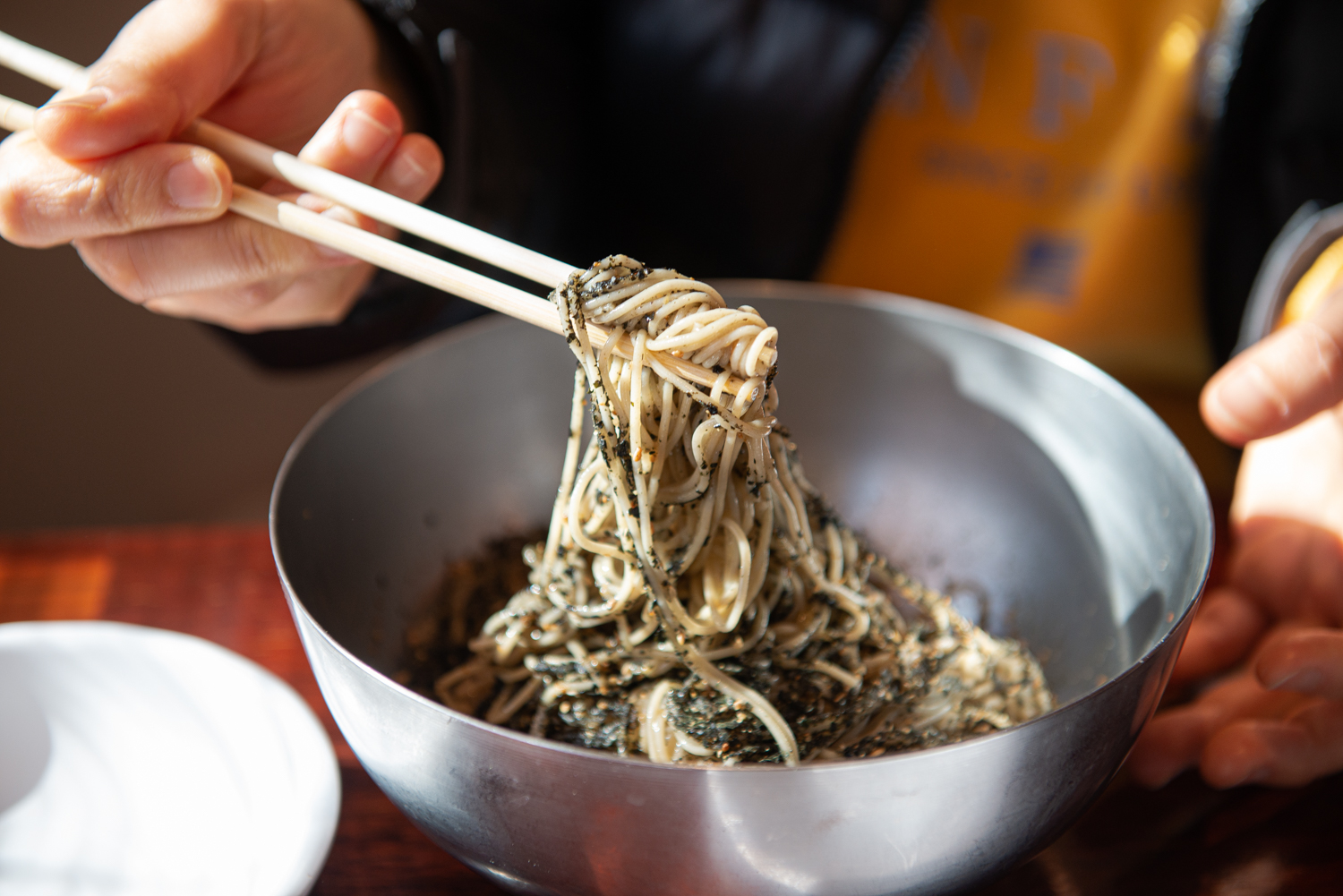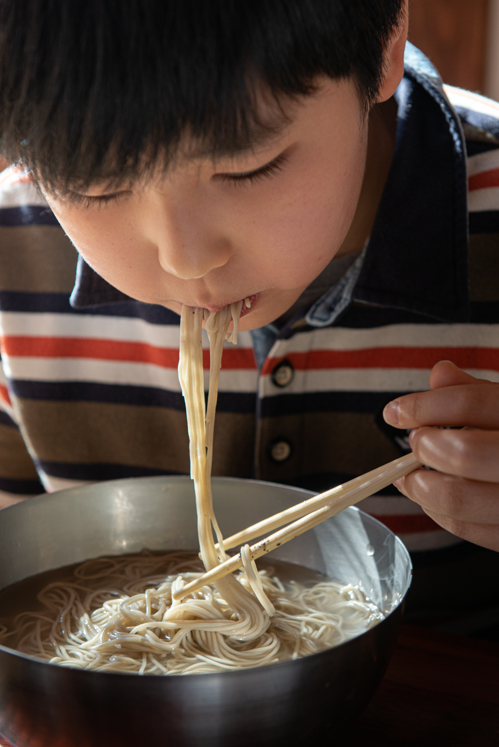 면을 좋아하는 아이는 말을 끊고 폭풍흡입 중입니다.