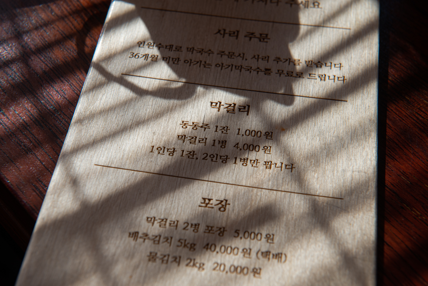 대기실에 좋은 글이 눈에 띕니다. 이 식당 사장이 손님을 생각하는 마음일까요?