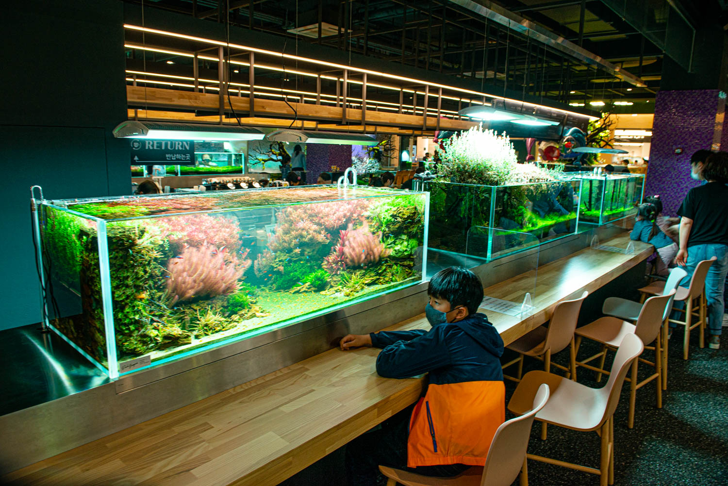 기흥 아쿠아가든 입구 입니다. QR코드 인증후 셀프주문하고 입장하면 됩니다. 자리는 원하는곳으로 잡으면 되는데 주말이라 그런지 수족관을 볼 수 있는 좋은 자리는 없더군요.