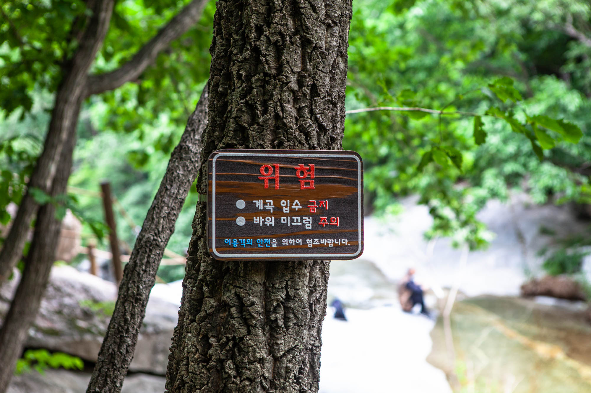 그런데 폭포가 있는 계곡은 입수가 금지 되어 있습니다. 입수만 하지 않고 옆에 앉아 있는건 괜찮은걸까요?