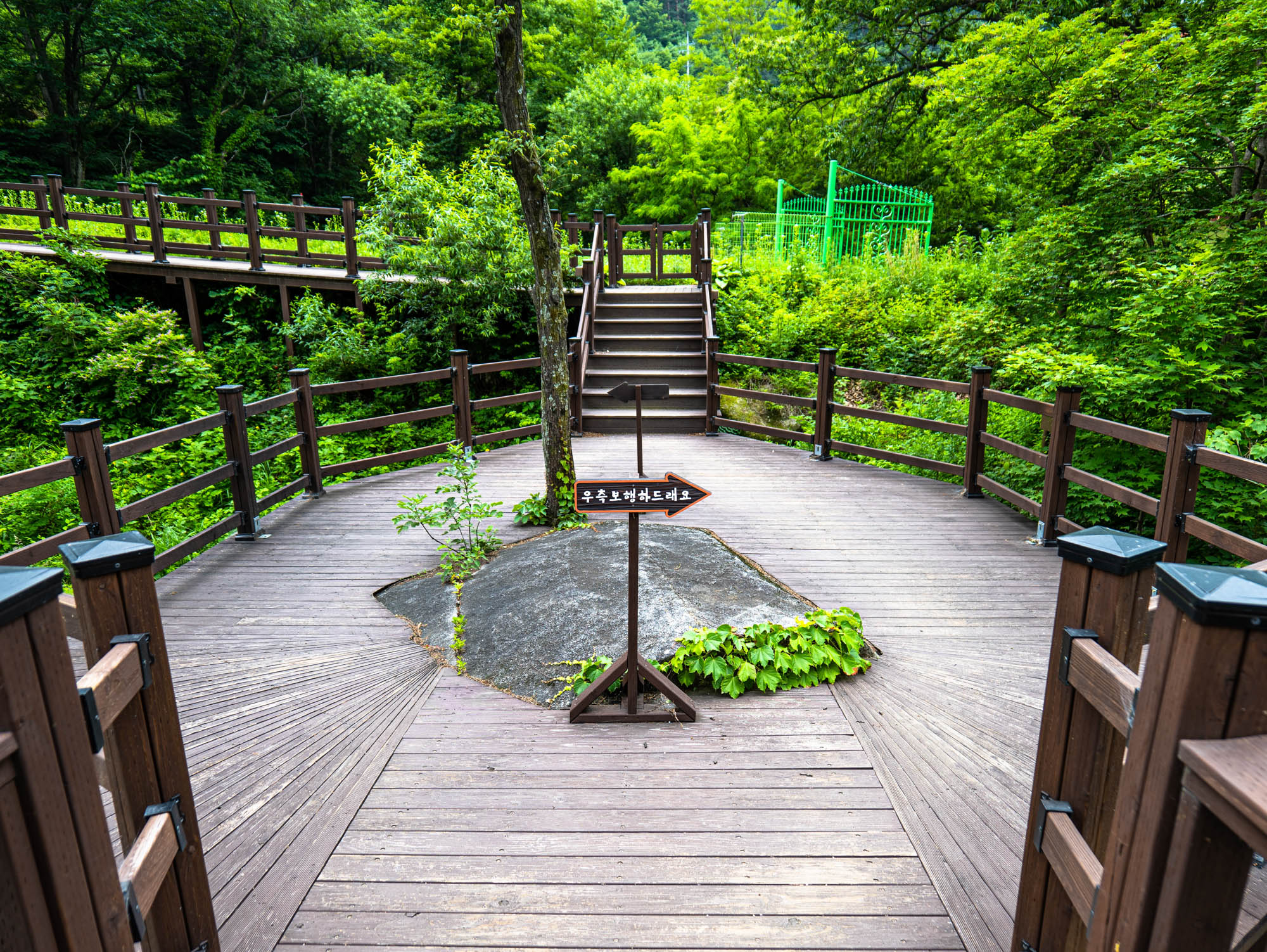 계곡을 따라 조금 더 올라가면 계곡을 건너는 솔숲교라는 나무다리와 이어집니다.