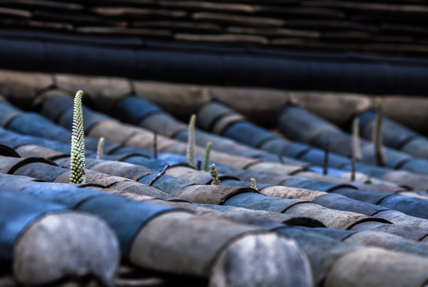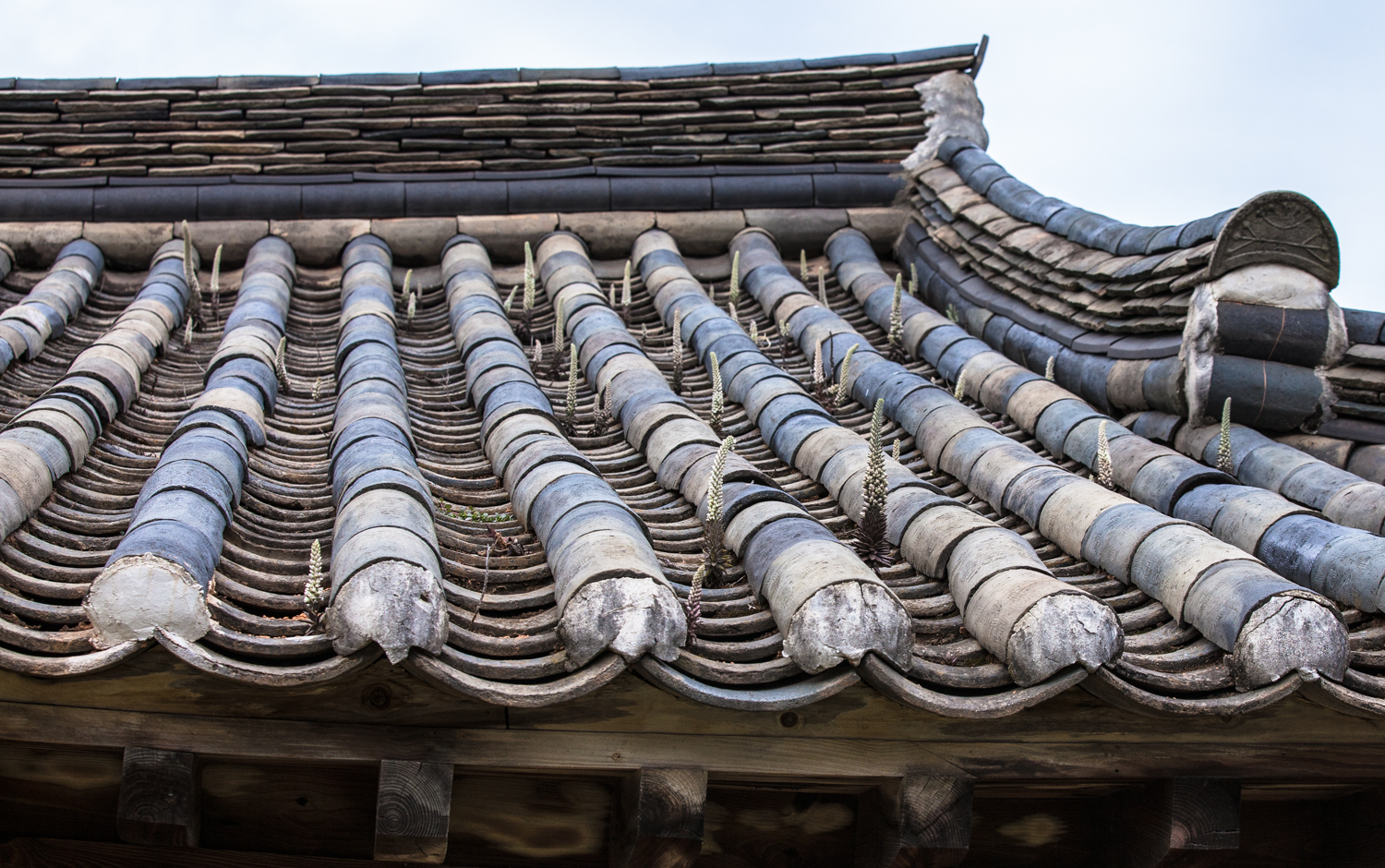 2백년이 넘은 기와 사이사이에 빼꼼히 얼굴을 내밀고 있는 와송입니다. 요즘은 오래된 사찰이나 고택에 가야만 가끔 볼 수 있을 정도로 귀한 자연와송입니다.