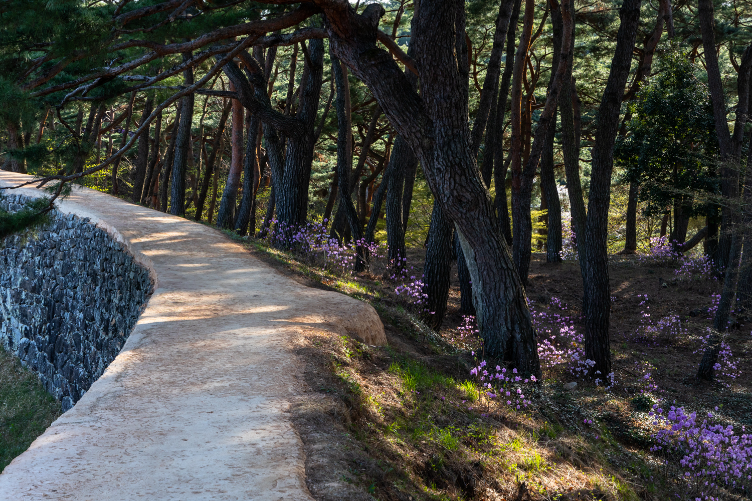 읍성 성곽을 기준으로 안과 밖으로 둘레길 처럼 길이 나 있습니다. 이 사진은 읍성 성곽안쪽으로 이어져 있는 소나무숲길입니다.