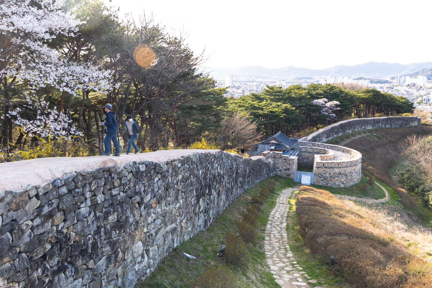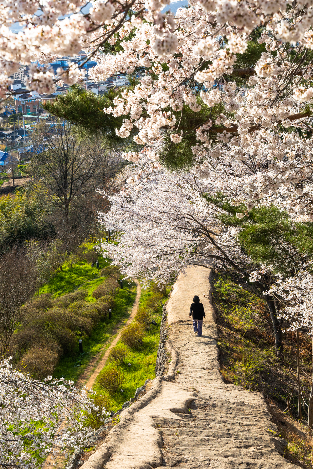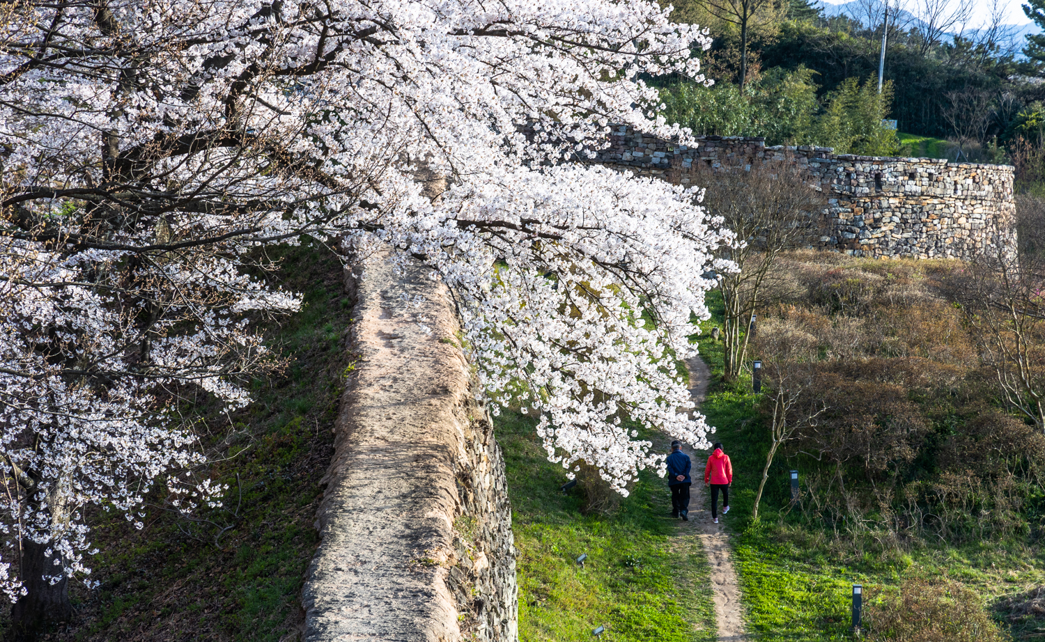 맹종죽 숲에서 나오면 다시 벚꽃 성곽길은 이어집니다.