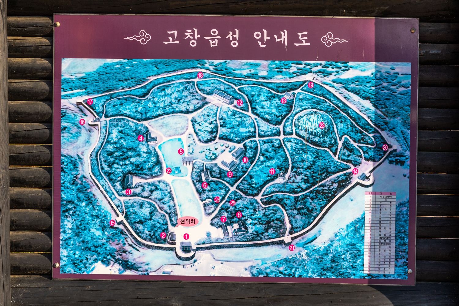 고창읍성은 동,서,북문과 3개소의 옹성, 6개소의 치성을 비롯해 성밖으로 해자 등 전술적인 시설이 갖춰져 있습니다. 해자는 성밖에 파 놓은 물구덩이를 말합니다.
