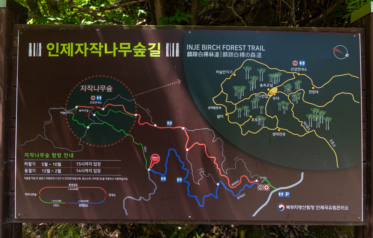인제 원대리의 자작나무숲 또한 산림청이 처음으로 자작나무로 인공조림한 숲입니다. 1974년부터 95년까지 138ha에 자작나무 69만 그루를 심었다고 합니다. 그리고 30년이 지나 나무들이 성장하고 숲이 울창해지자 자작나무 숲의 아름다움이 알려지기 시작했습니다. 그때가 2000년 초 중반이었던걸로 기억합니다. 한 산악잡지에 소개된 후로 사람들이 찾기 시작하면서 지금은 한해 45만여 명이 찾는 인제의 관광명소로 '한국 관광 100'선에 선정되기도 했습니다.