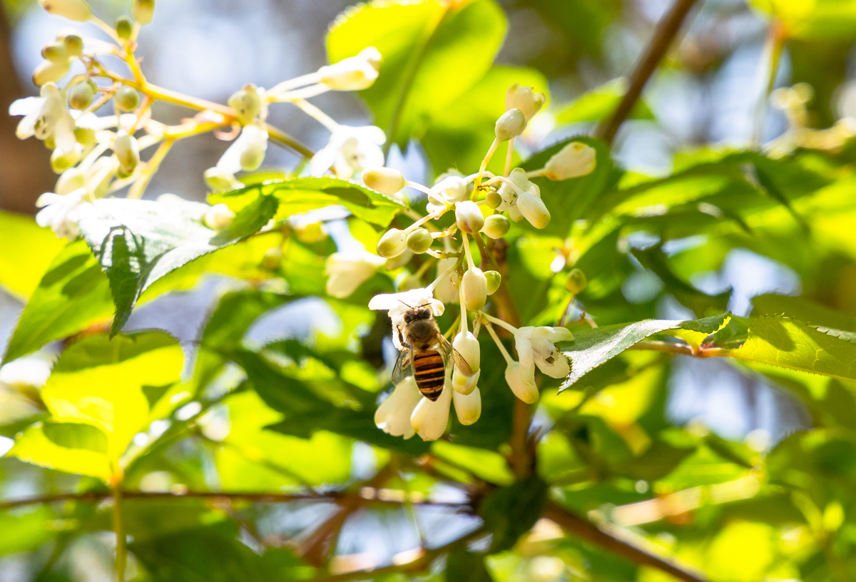 고추나무꽃에서 정신 없이 꿀을 빨고 있는 꿀벌입니다. 꿀벌들이 사라졌다고 하더니 이곳에는 엄청 보입니다. 자연의 꿀벌이 아닌 양봉업자들이 키우는 벌이 사라진 거겠죠? 양봉벌도 착취당한다는 것을 알아차린 걸까요?