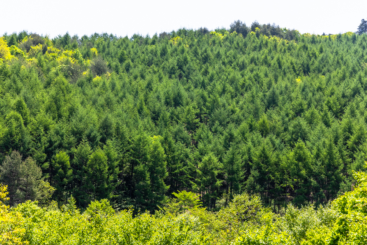 자작나무 이외에도 낙엽송숲 조림지도 나타납니다.