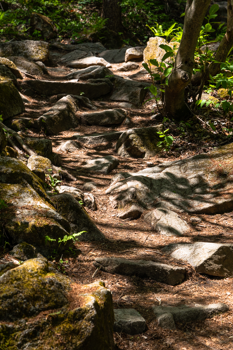 두 개의 임도 외에도 산길 코스로 0.9km의 1코스, 1.5km의 2코스, 1.1km의 3코스, 0.86km의 5코스, 2.24km의 6코스, 1km의 7코스가 있습니다. 하지만 관광객 대부분은 윗 임도길로 올라갔다 내려옵니다. 저 또한 무리들을 따라 두 번이나 같은 길로 올랐었는데요, 하지만 이번에는 윗임도길이 공사 중이어서 아랫길로 가야만 했습니다. 그런데 아랫임도길이 넓은 윗임도길보다 훨씬 더 좋다라는 것을 알았습니다.