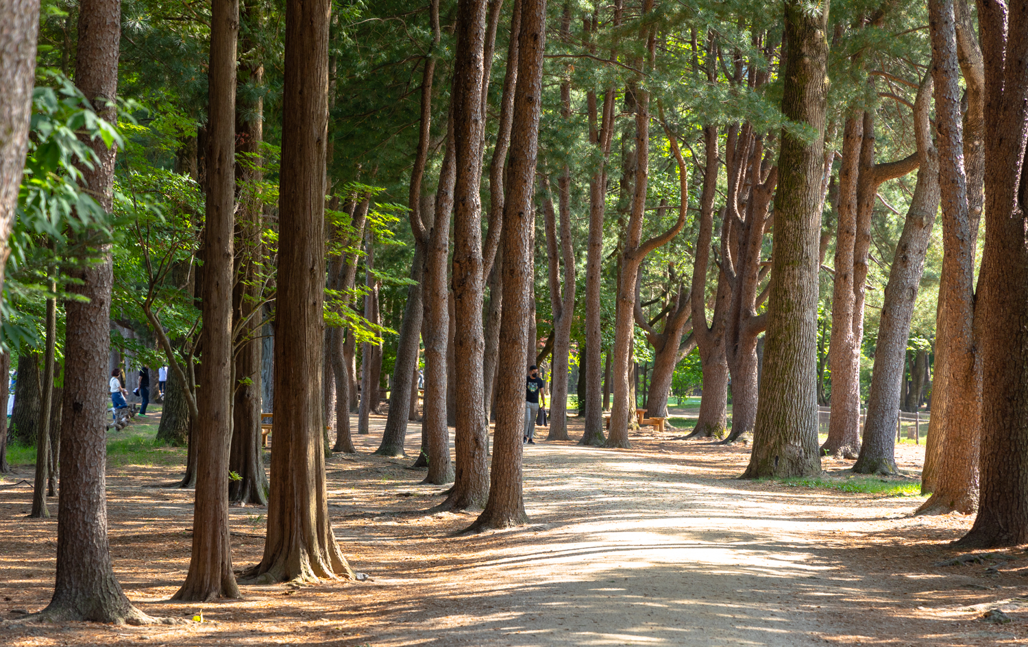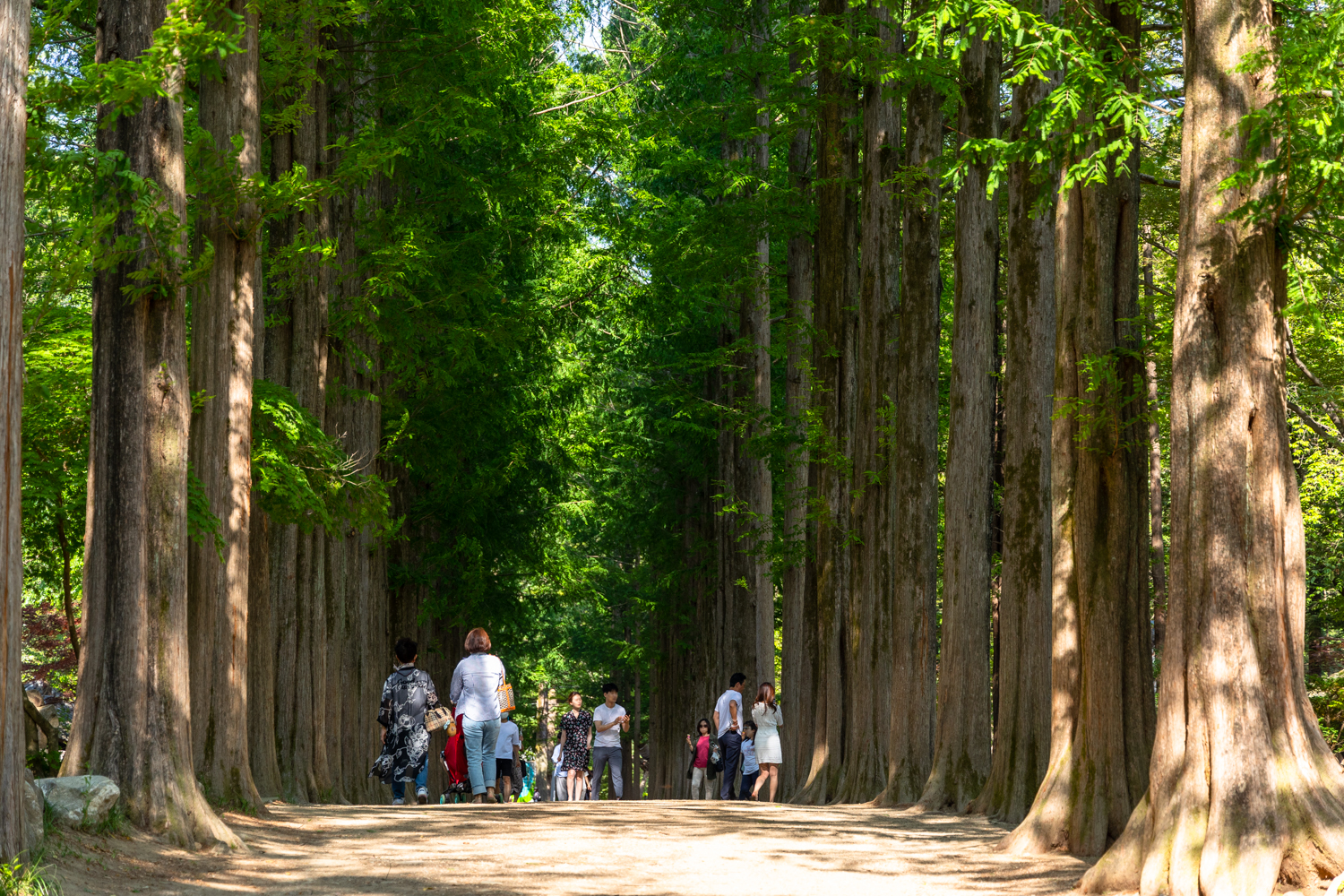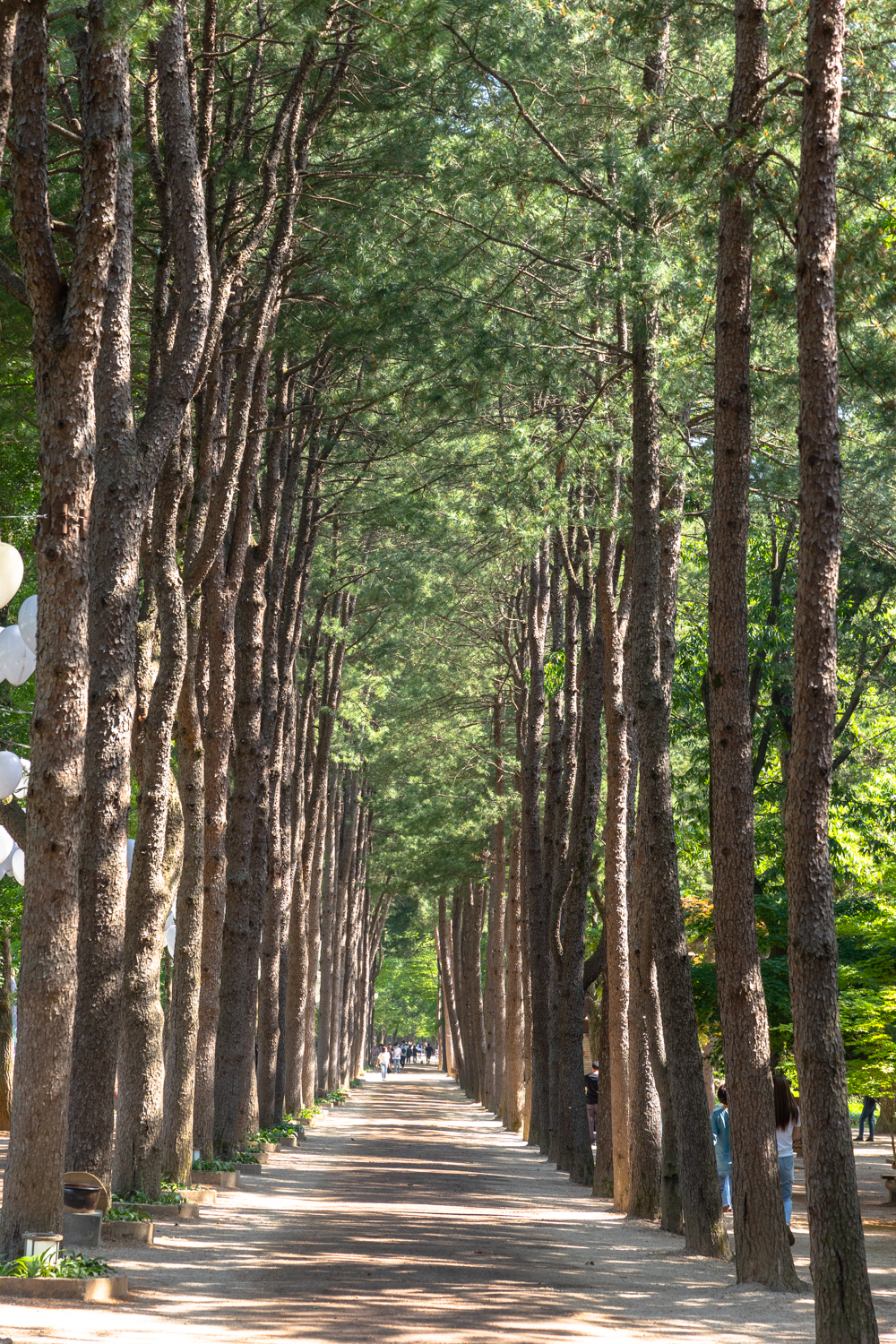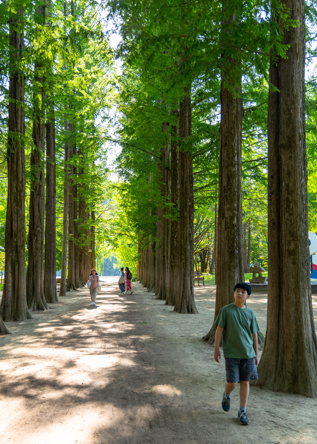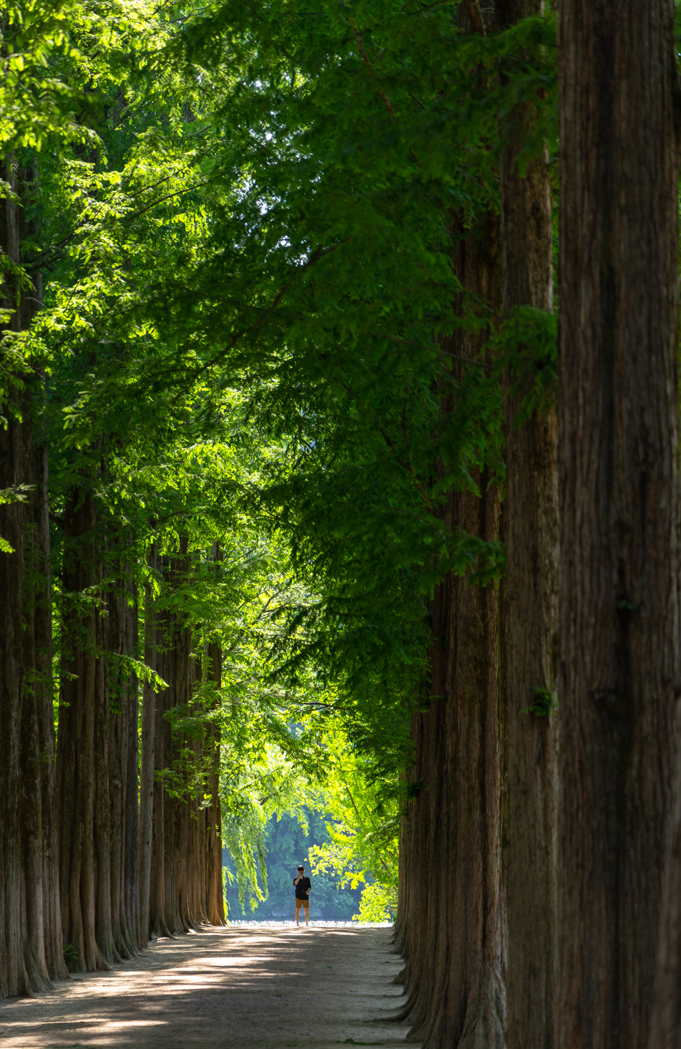 사람이 쉴새 없이 많아서 홀로 사진찍기가 힘들 정도인 남이섬 메타세콰이어숲 입니다.