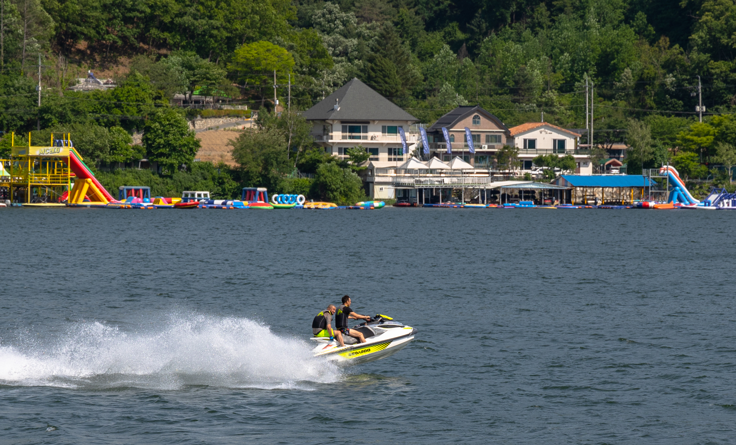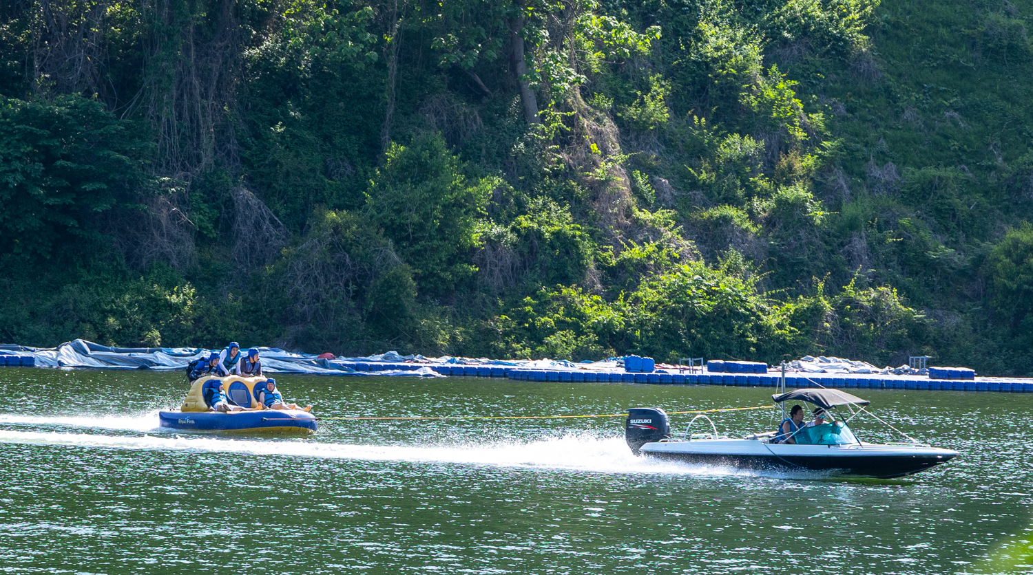 비명소리에 눈을 놀리니레저보트의 끌려오는 사람들의 괴성이 재미있습니다.