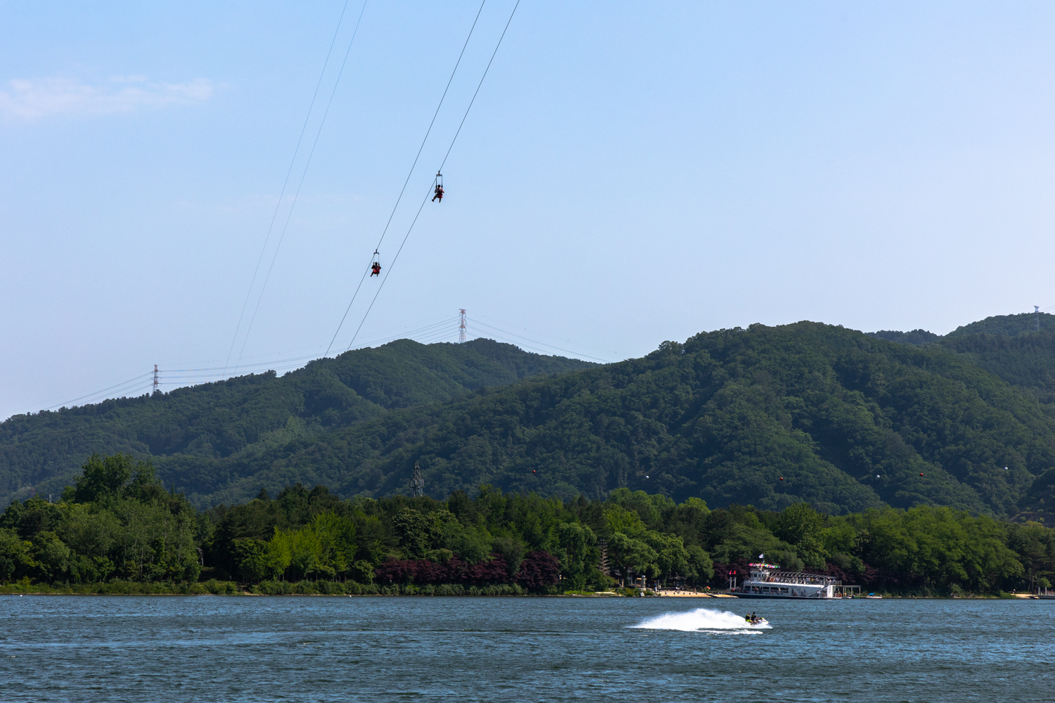 북한강 전체가 여름철이면 수상레저의 메카가 됩니다. 상수원인 남한강에 비해 자유롭고 상업적이죠.