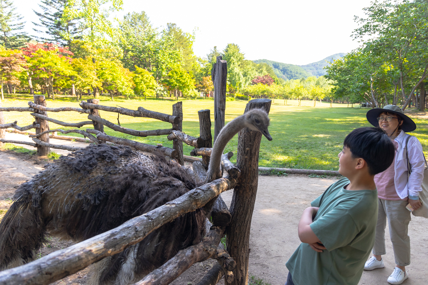 타고농장이 있는데 등에 털이 한움큼이나 빠진 타조들이 여러마리 돌아 다니고 있네요, 사람들 가까이 와서 먹이를 달라는건지 쪼을 기세입니다.