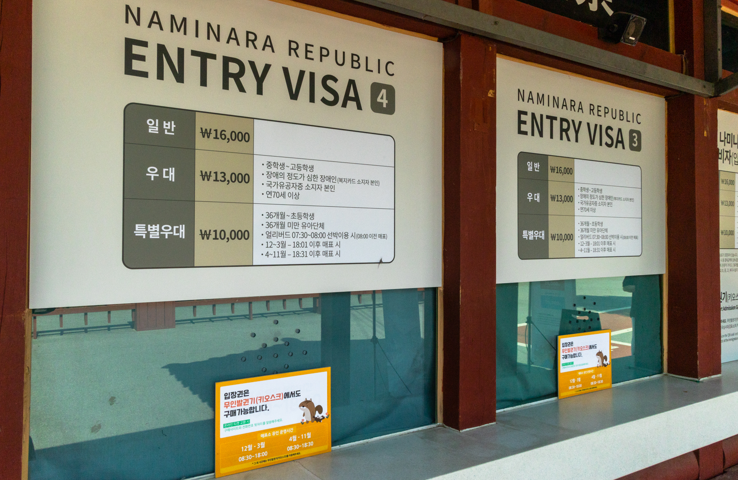 남이섬 입장료가 싸지 않습니다. 오전 7시30~8시 선박 이용시, 그리고 12~3월 저녁 6시 이후, 4~11월 저녁 6시30분 이후에는 특별우대로 1만원에 입장할 수 있다고 합니다.