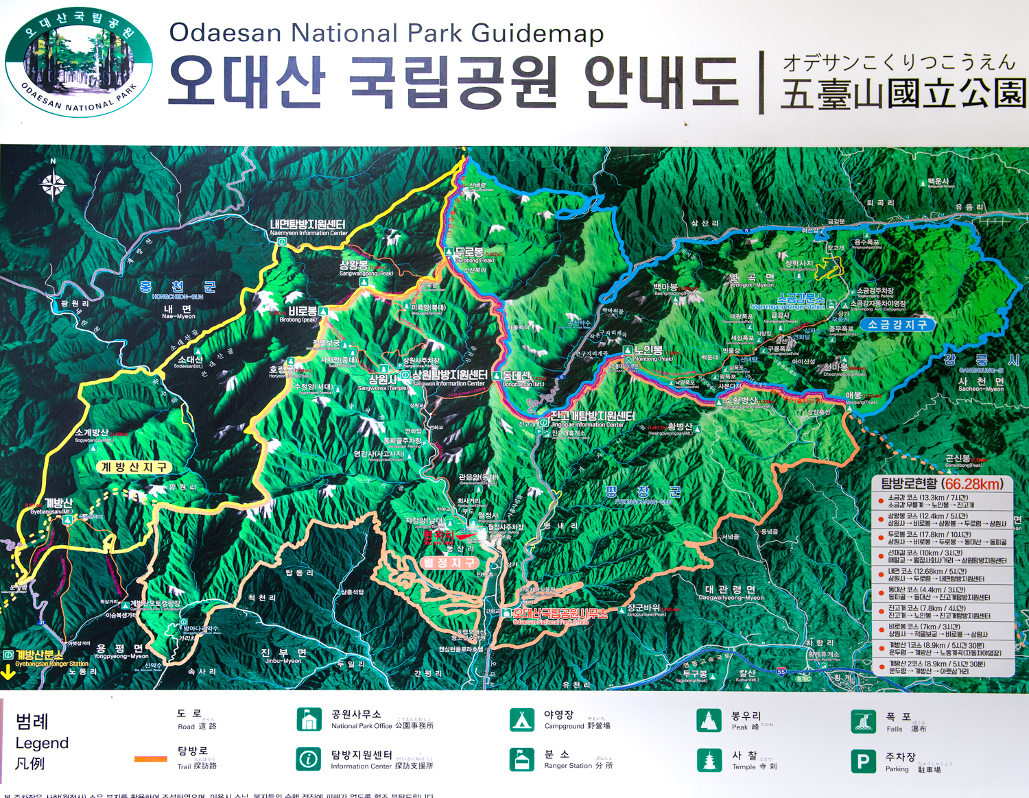 오대산 등산 지도 입니다. 오대산은 크게 계방산지구, 소금강지구, 월정지구로 나누는데요 월정사가 소유한 땅의 면적이 1천7백7십만 평으로 전면에 보이는 월정지구의 대부분이 월정사 소유라고 합니다.