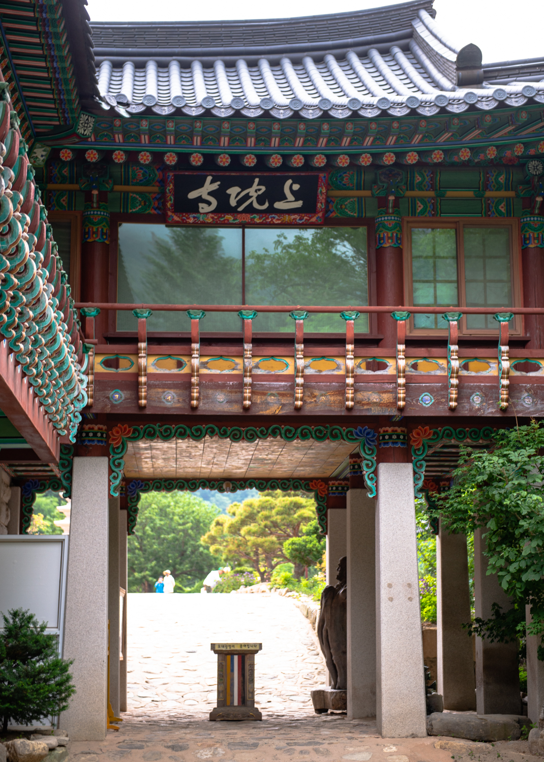 그리고 문수전 앞 계단 왼쪽에는 세조가 만들라 했던 한쌍의 '고양이 석상'이 있습니다. 세조는 문수보살을 만난 다음해 상원사를 다시 찾아 예불을 드리게 됩니다. 그때 고양이가 세조의 옷소매를 물고 늘어져 못들어가게 막았는데요, 이를 이상하게 여긴 세조가 불당안을 샅샅이 뒤지게 했더니 탁자밑에 세조의 목숨을 노린 자객이 숨어 있었다고 합니다. 고양이 덕에 목숨을 건진 세조는 상원상에 '고양이 밭'이라는 묘전을 내렸다고 합니다.