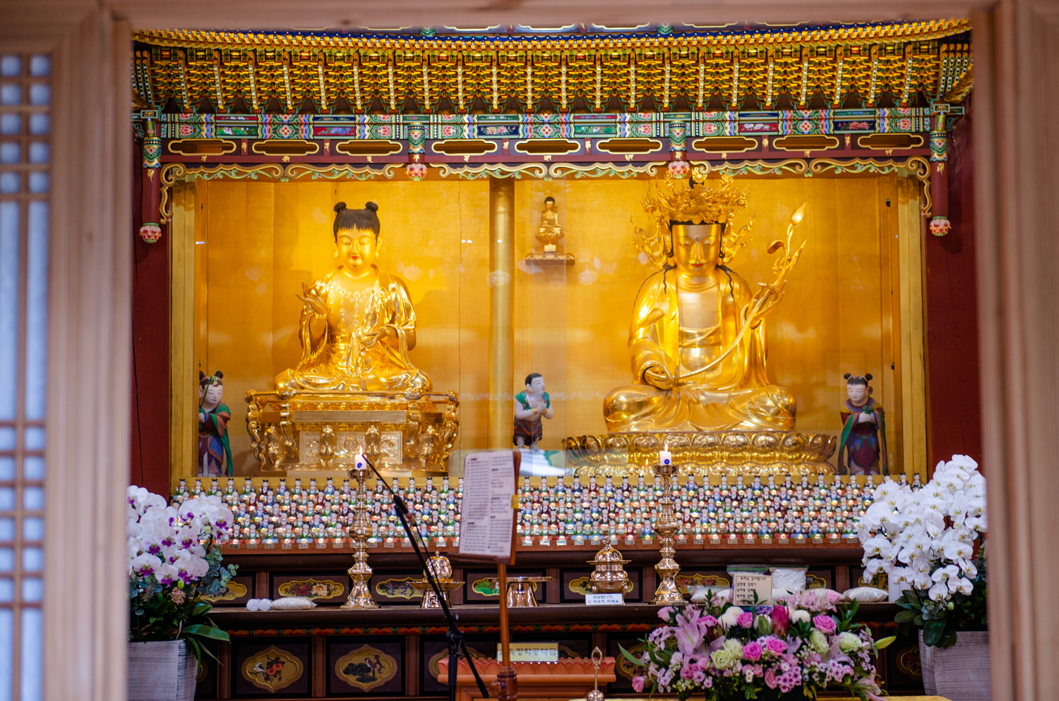 상원사는 석가모니불을 본존불로 봉안한 대웅전이나, 비로자나불을 본존불로 봉안한 적광전 같은 사찰과 달리 문수보살을 본전불로 모시고 있이서 본전 이름을 '문수전'이라고 합니다.