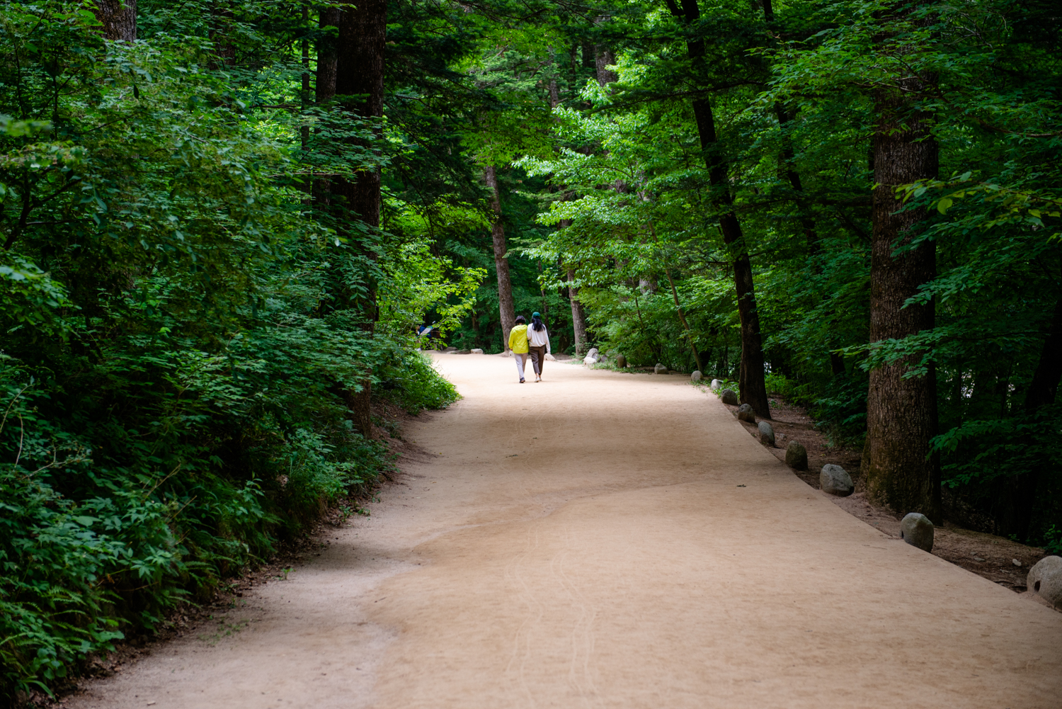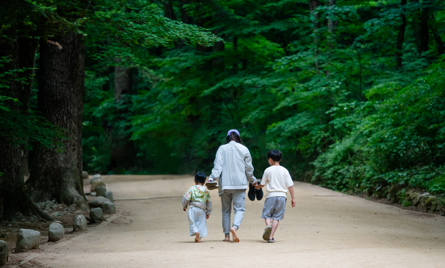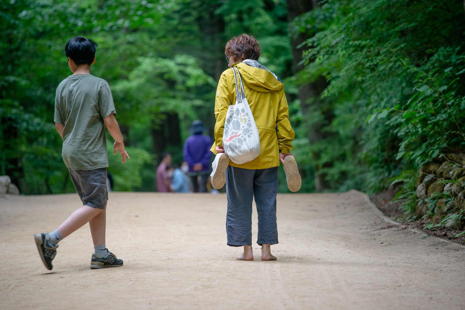 숲길이 평탄한 흙길이어서 맨발로 걸어도 편안하고 안전 합니다.