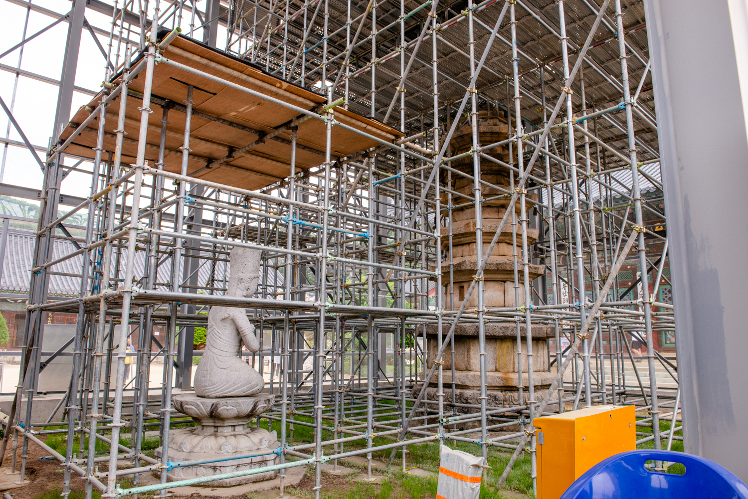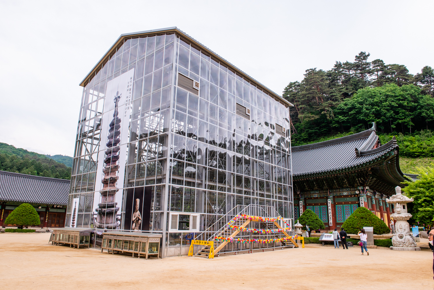 월정사 본당이 있는 적광적 앞의 8각9층 석탑이 해체 복원 공사중 입니다. 국보 48호로 남한에 유일하게 남아 있는 고려시대 다각 다층탑 이라고 합니다.