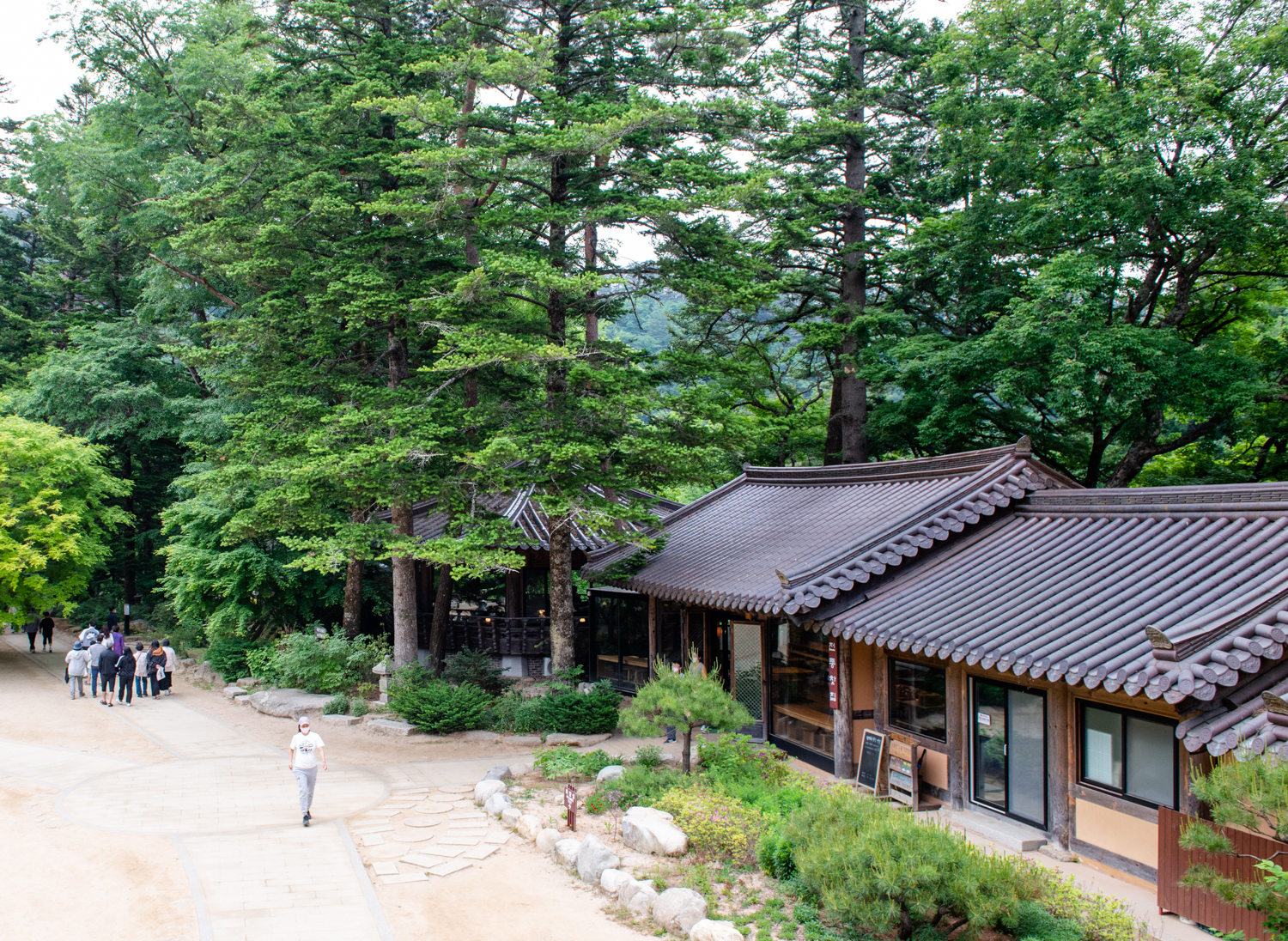 전나무 숲길을 지나 월정사 경내로 들어가면 카페 난다나와 전통찻집이 나란히 붙어 있습니다. 베이커리와 커피류를 드시고 싶다면 '난다나'로 아니면 전통찻집으로 가면 됩니다. 입구는 달라도 야외 테라스에서 같이 만날 수 있습니다.