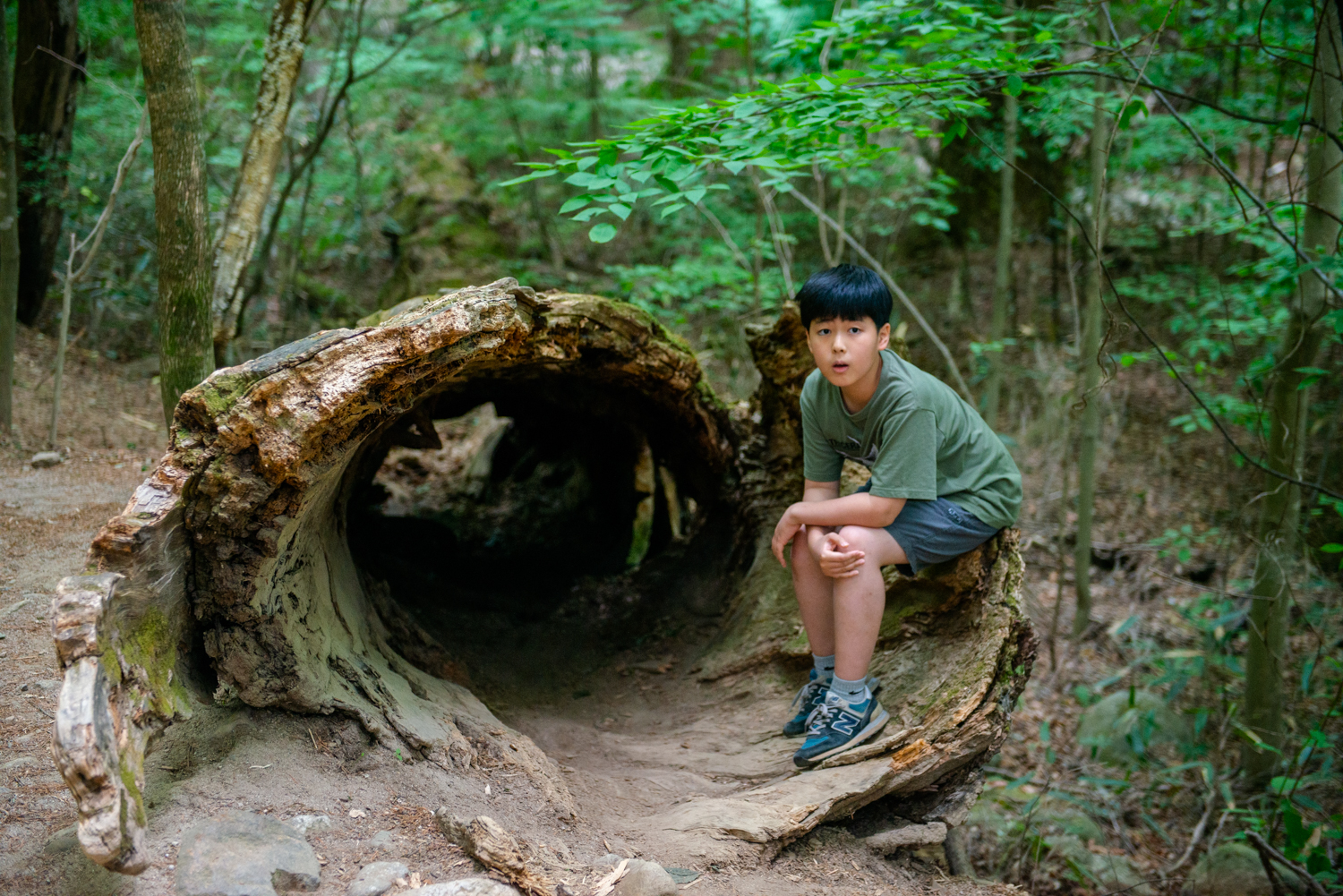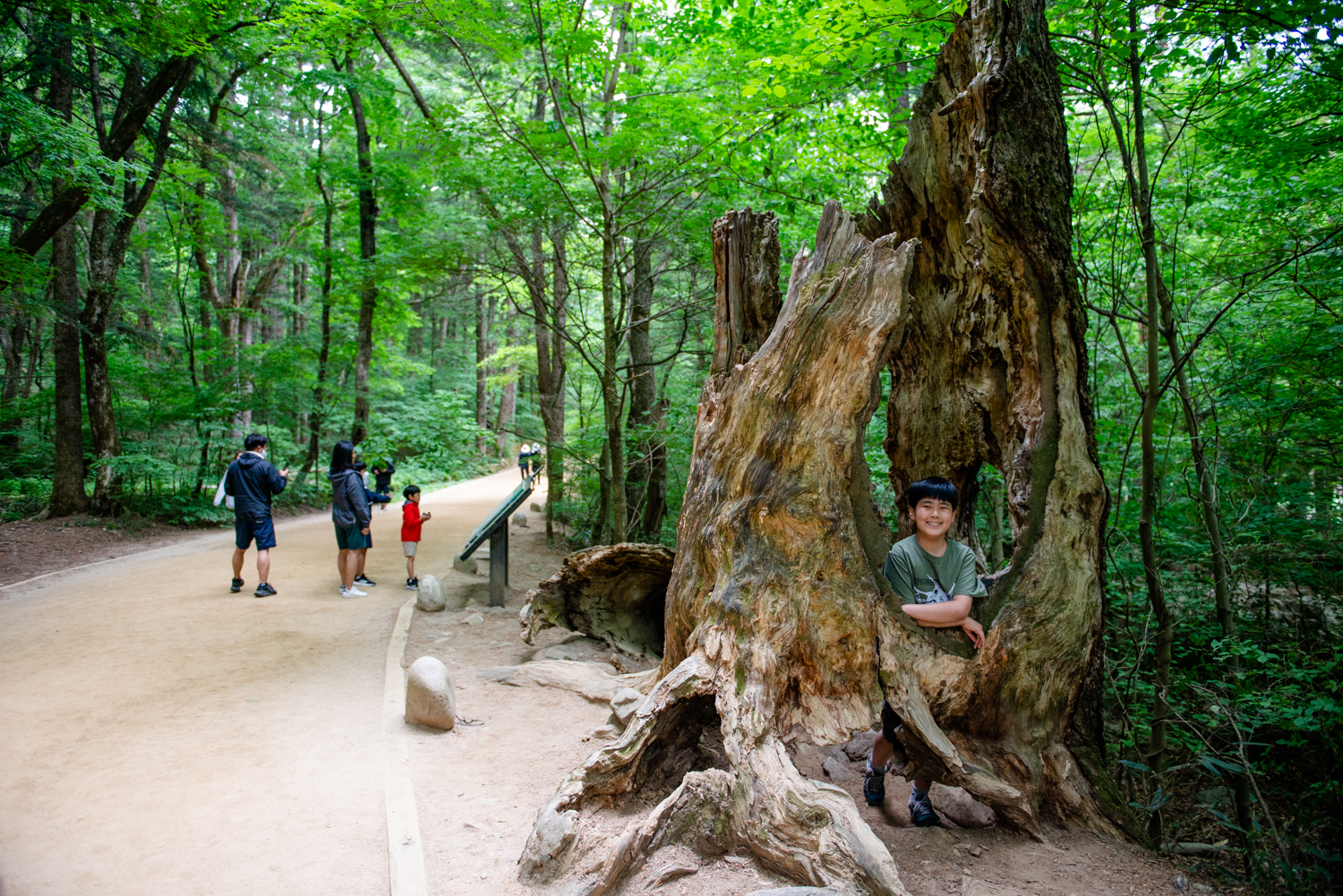 죽은 전나무 몸통은 닳고 닳아 아이들 놀이터가 됐습니다.