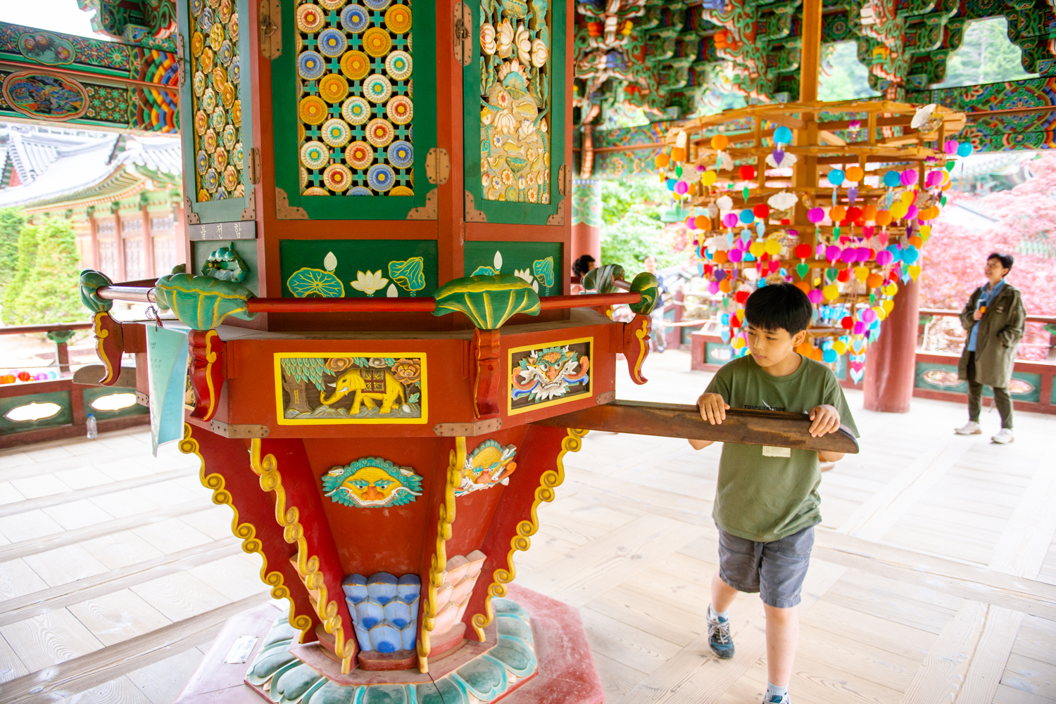 윤장대라고 하네요, 강화도 전등사에서도 보고, 설악산 봉정암에서도 본 이색적인 불구 입니다. 내부에 불경을 넣어 이것을 돌리면 불경을 한번 읽은 것과 같다는 의미 입니다.