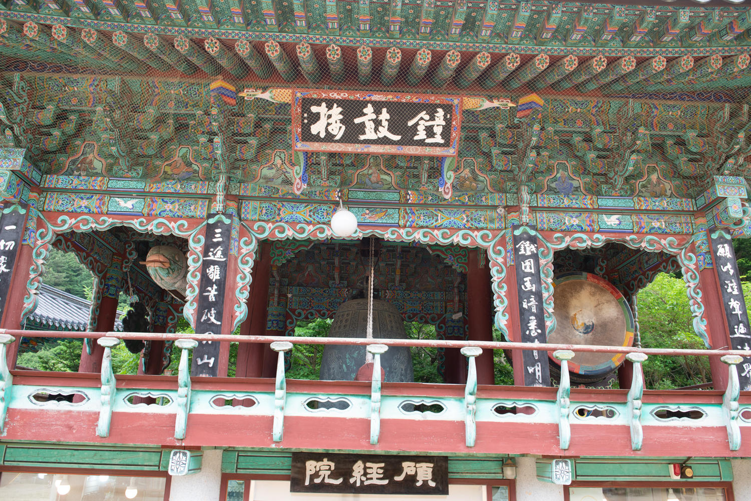 종고루 안에는 불교의 사물인 범종, 목어, 운판, 법고가 모두 들어 있습니다.