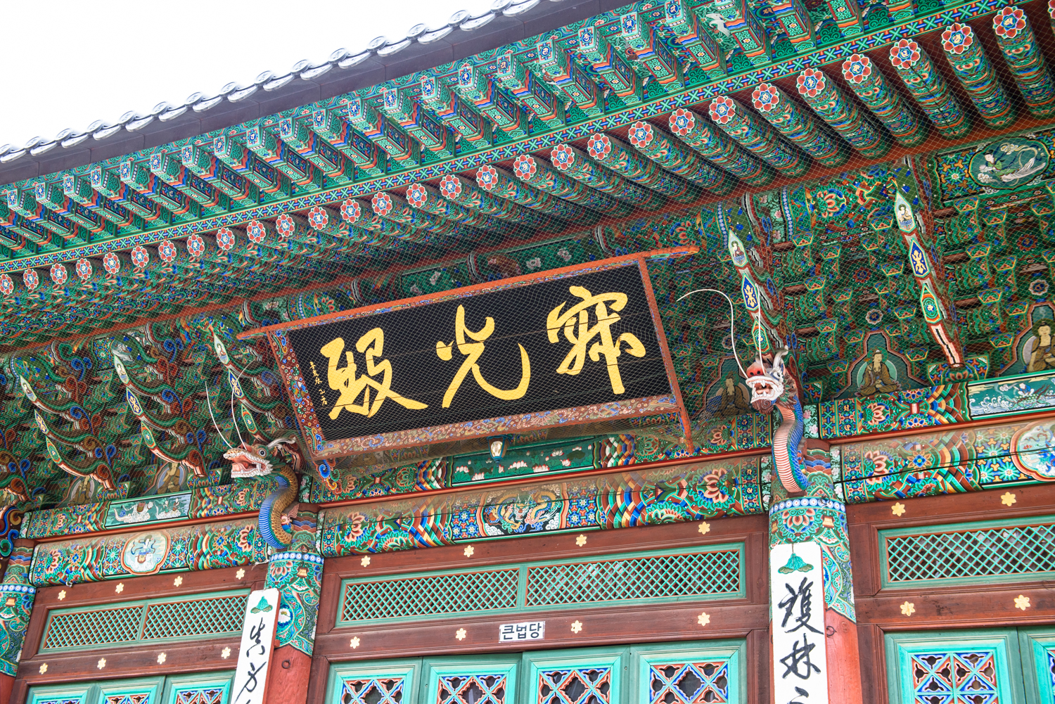 월정사 큰법당 입니다. 보통 대웅전이라고 하는데 여기는 적광전이라고 합니다. 적광전은 비로자나불을 모신 전각을 말합니다. 그러나 월정사 큰법당은 통례를 깨고 경주 석굴암의 불상 형태를 따른 석가모니불을 모셨다고 합니다.