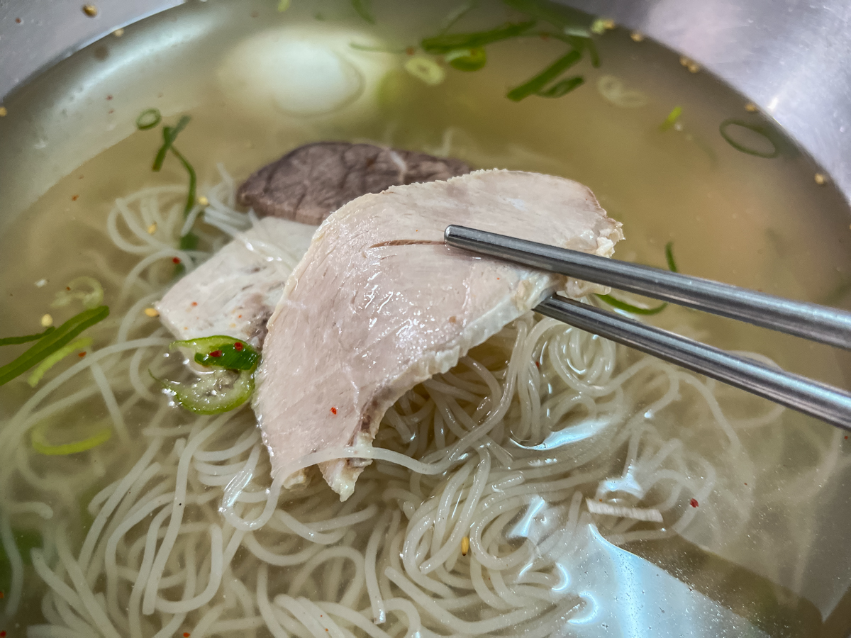 면은 소면보다 더 얇고 뚝뚝 끊어지는 의정부 평양면옥의 그 면발 그대로 입니다. 육수를 한 모금 마셔 봅니다. 진한 육향이 시원하게 목을 타고 몸 속으로 확 퍼져 나가는것 같습니다. 마치 스포츠 음료를 마시는것 같은 청량감이 있습니다.