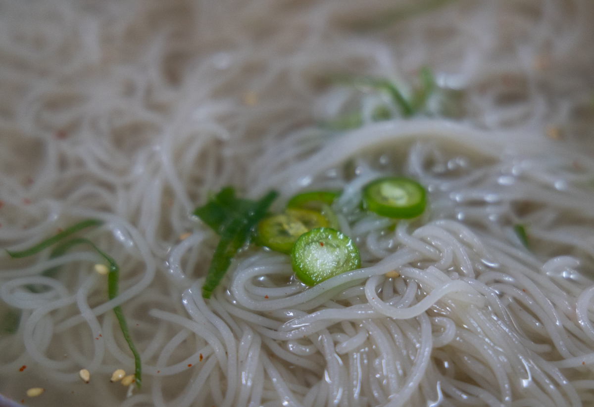 얇게 썬 고추를 면과 함께 씹을때면 담백함과 매콤함이 어울려 깔끔한 맛 입니다.