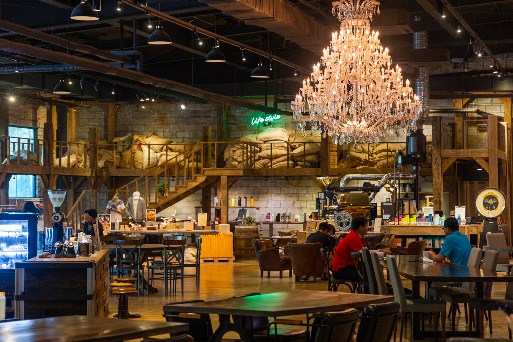 가평 더스테이힐링파크는 호텔과 레스토랑, 알파카와 앵무새를 볼 수 있는 동물원, 와일드 가든, 미니 골프장, 수영장을 갖춘 힐링파크 입니다. 와일드가든에서 이국적인 에배당도 보고 예쁜 나무며 키작은 꽃들도 봤습니다. 그리고 주차장으로 돌아와 나인블록 카페를 찾았습니다. 입구에서 보는 것과달리 안쪽으로 들어오니 엄청나게 넓은 카페 공간이 마치 공장처럼 펼쳐져 있습니다.