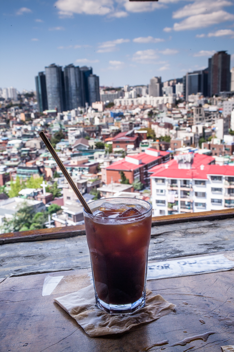 좁은 계단을 따라 위층으로 올라가면 용산미군기지 덕분에 서울에 몇 남지 않은 낮은 양옥 동네들이 눈앞에 펼쳐 집니다. 매일같이 높은 빌딩과 아파트에 익숙한 눈에 이국적인 느낌을 주기에 충분 합니다.