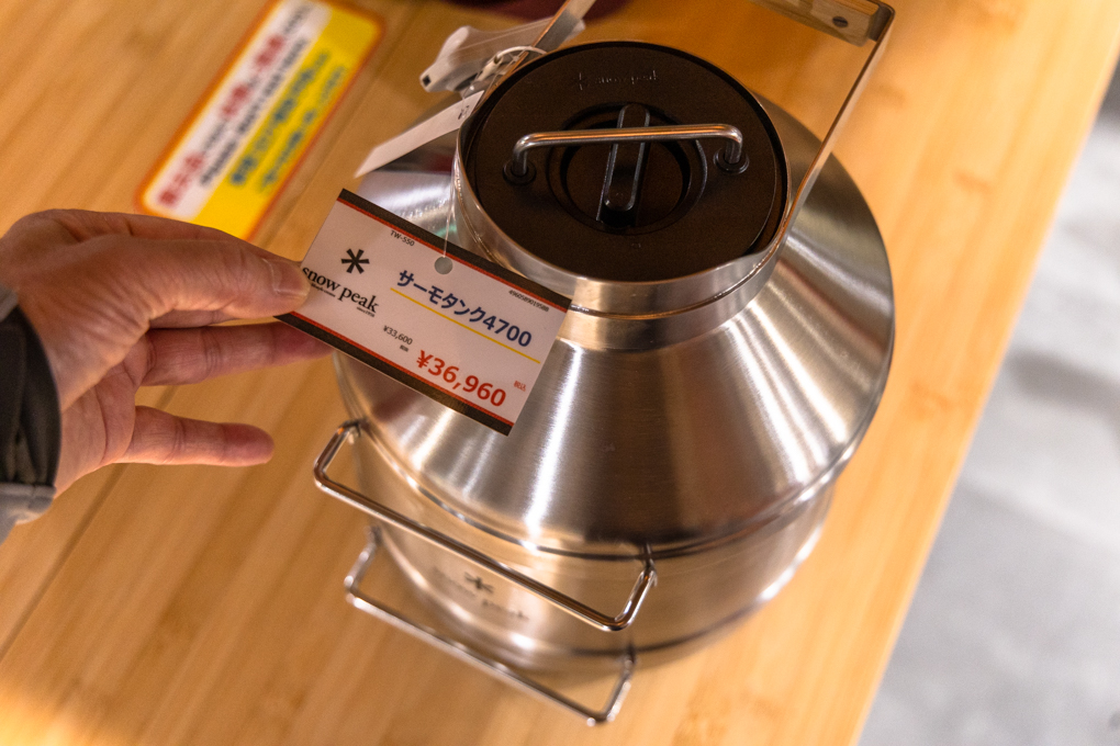 우유통을 닮은 '써모탱크 4700', 4.7리터 진공 보냉 보온병으로 캠핑장에서 생맥주를 담아 먹는 용기입니다. 세금포함 36,960엔