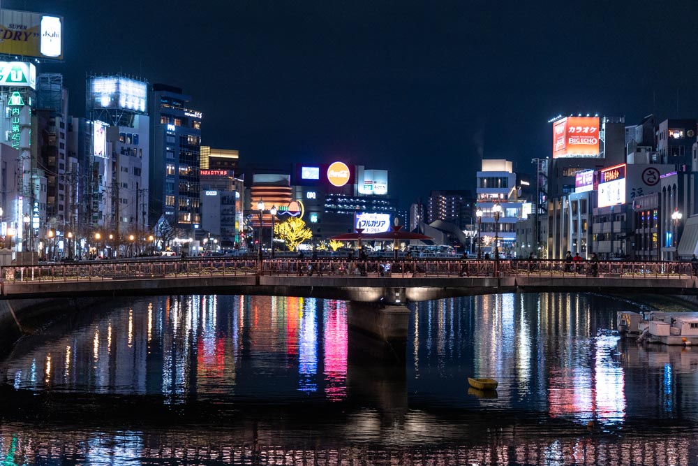 이치란 라멘을 후루룩 한 사발 하고 나오니 텐진거리의 텐진강 주위는 반짝이는 네온과 불빛, 사람들로 분위기가 꽤 좋습니다. 텐진거리는 후쿠오카시의 대표적인 관광지 중 하나로 클럽과 바, 작은 술집들과 포장마차거리가 유명합니다. 특히 불금이 되면 일본의 젊은 청춘들과 해외여행객들이 붐비는 핫 플레이스가 된다고 합니다.