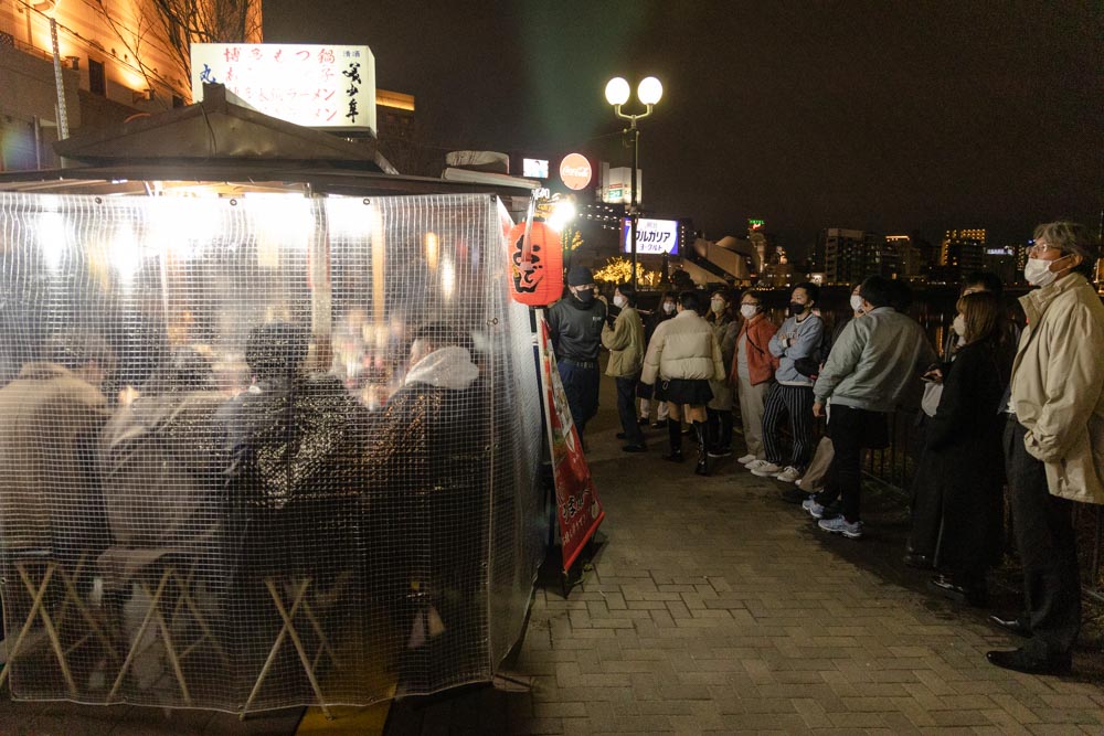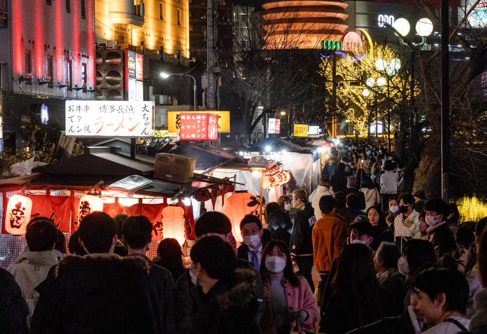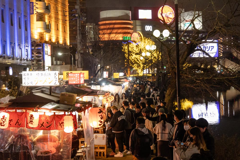 텐진거리 강변에는 포장마차들이 줄지어 있는 게 볼거리입니다. 포장마차에는 술과 함께 후쿠오카의 대표적 음식인 라멘부터 어묵, 꼬치 같은 안주들을 즐길 수 있습니다. 날씨가 따뜻할 때는 야외에서 앉아서 먹을 수 있기도 한데요, 포장마차의 불빛이 이국적인 분위기를 더해주어 멋진 경험을 될 것 같습니다. 한 가지 단점이라면 대기 손님이 많아서 한 시간 이상 앉아 있기 힘들다는 점입니다. 주문을 더 하지 않으면 막 쫓아낸다고 하네요.