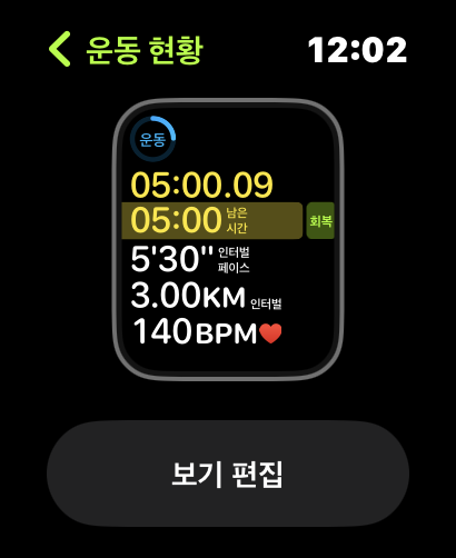 13. 보기 편집은 사용자가 원하는 순서대로 설정할 수 있습니다. 저는 시간, 페이스, 거리, 심박 순으로 설정합니다.
