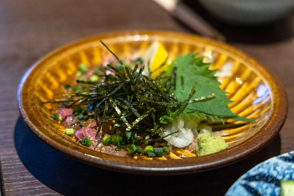 오토오시(자릿세) 1인 350엔, 일본은 자릿세 문화가 있는데 자릿세로 기본 안주 같은데 나오는데, 이곳은 내장초무침을 줍니다. 깔끔하고 맛있습니다.