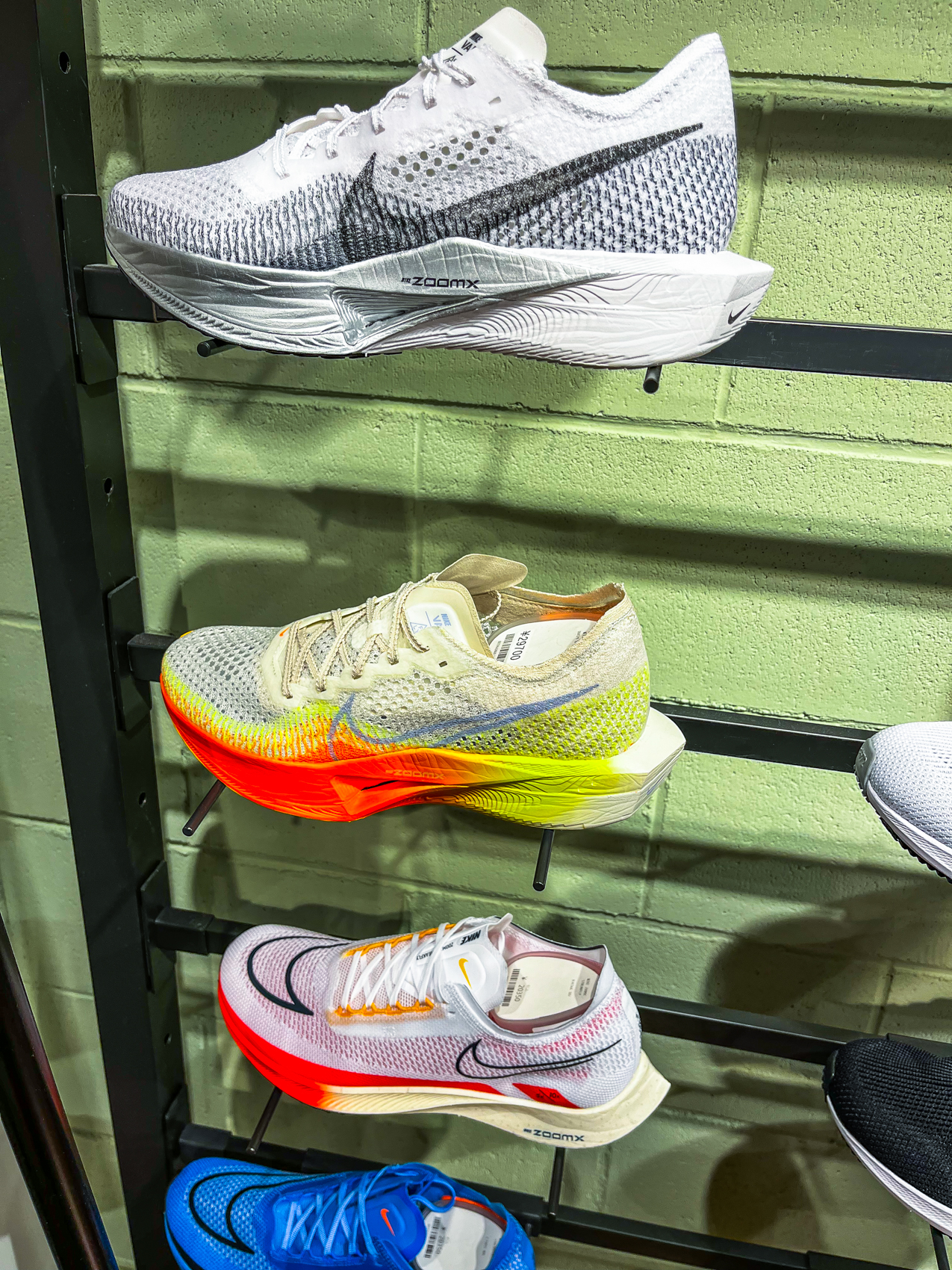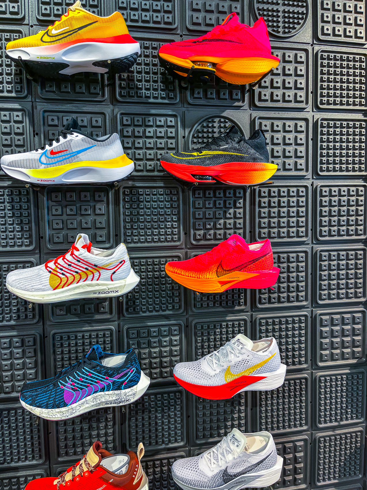 1층으로 내려와 여성 러닝화를 구경 합니다. 오른쪽 줄에 알파플라이2, 3가 있네요.