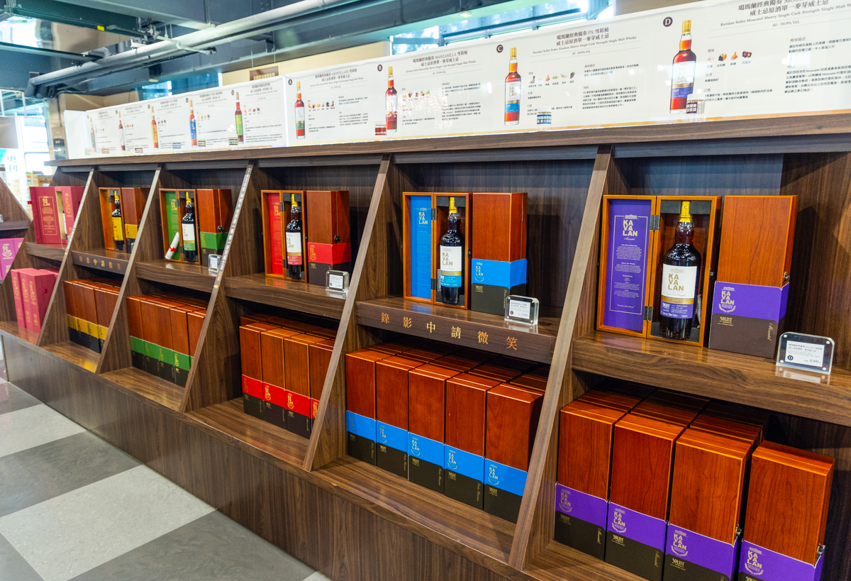 카발란 모든 라인업이 판매되고 있는 기념품 샆, 위스키 외에도 글라스와 코스터, 테이스팅 보드 등 다양한 물건들을 구입할 수 있습니다.
