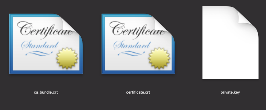 ZIP파일의 인증서에는 세개의 파일이 있습니다. ca_bundle.crt/certificate.crt/private.key