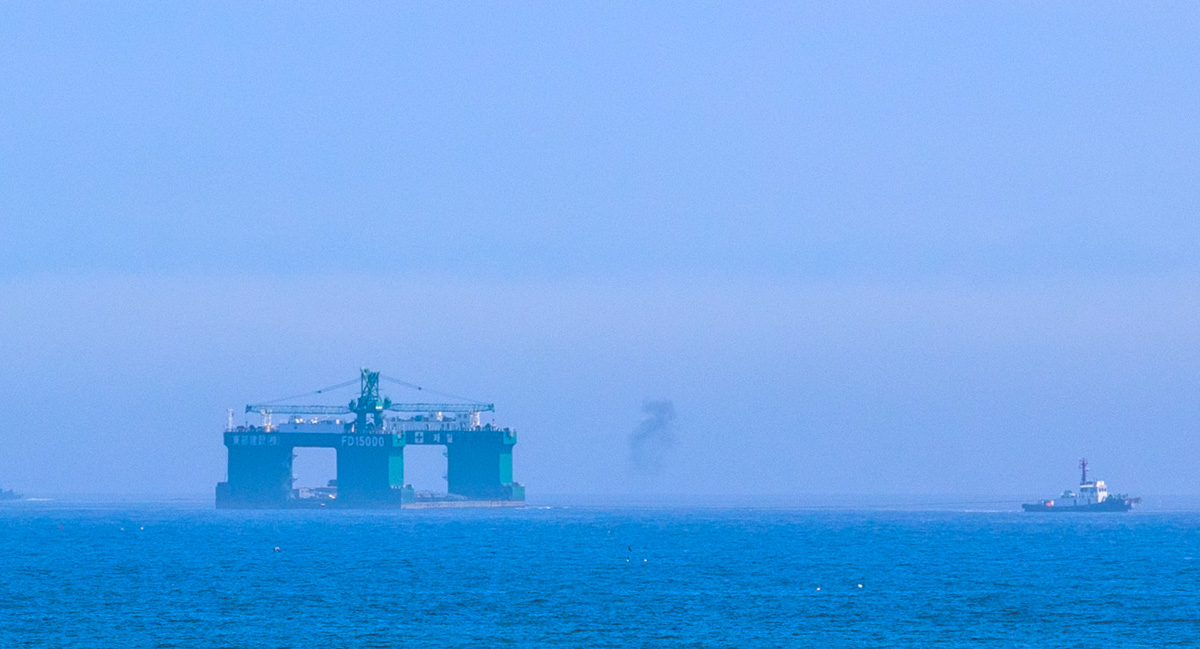 며칠전 삼척 장호항 바다 위를 오고 가는 해상케이블카를 구경하고 있는데 먼 바다쪽에 엄청나게 큰 시추선같은게 목격됐습니다. 200미리 망원렌즈로 촬영한 후 확대해 보니 크레인 같은 큰 구조물을 두 대의 배가 끌고 가고 있습니다. 마치 시추선 같기도 한 엄청난 크기의 크레인이 먼 바다에서 천천히 움직이는 모습이 신기합니다.