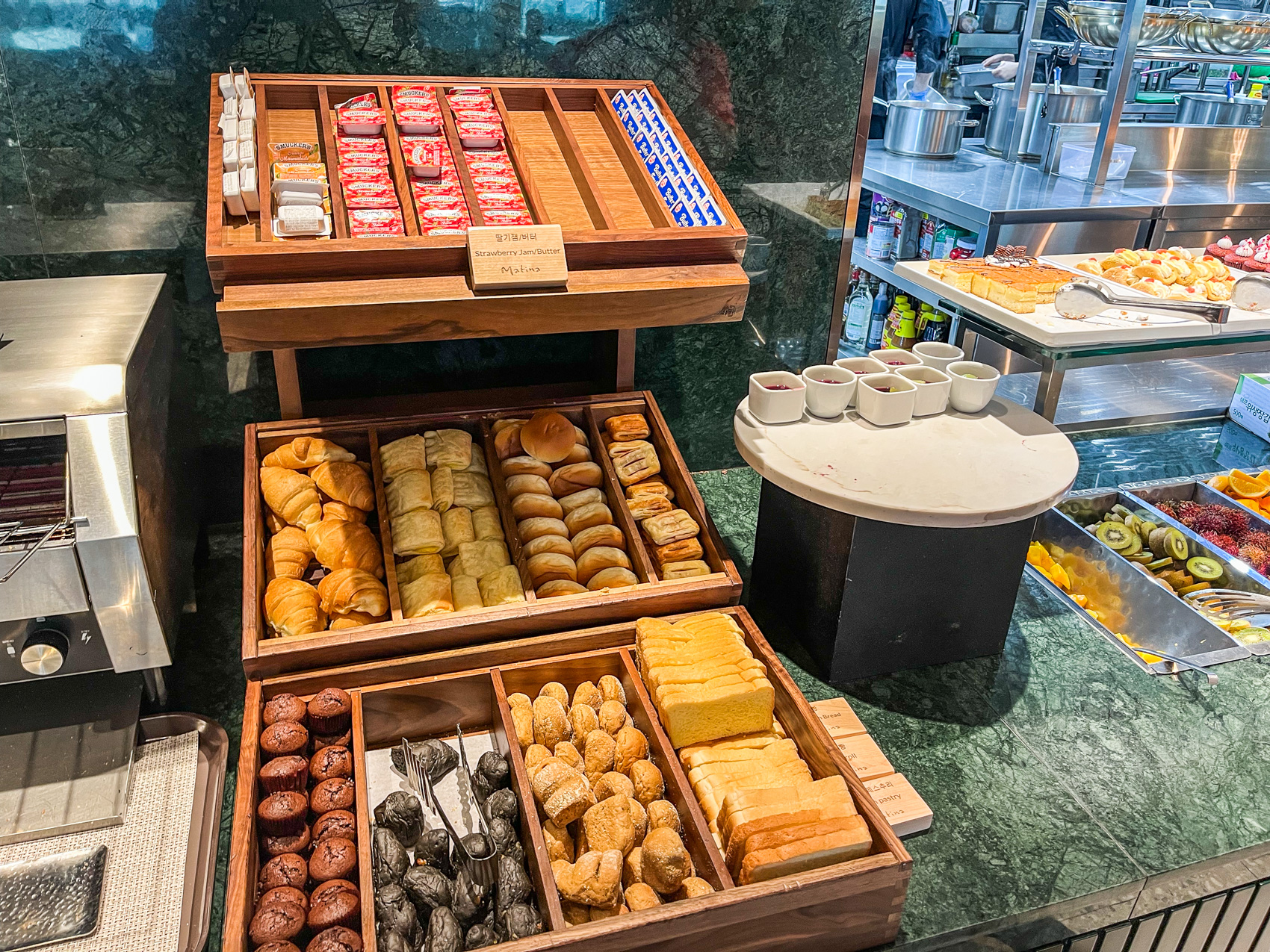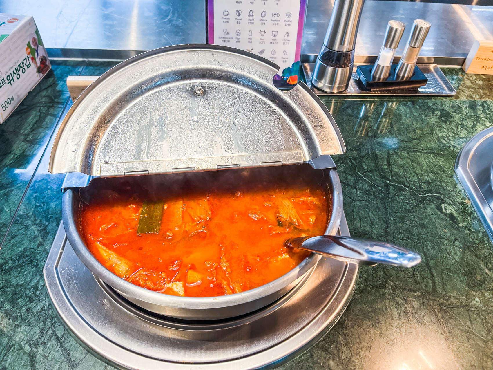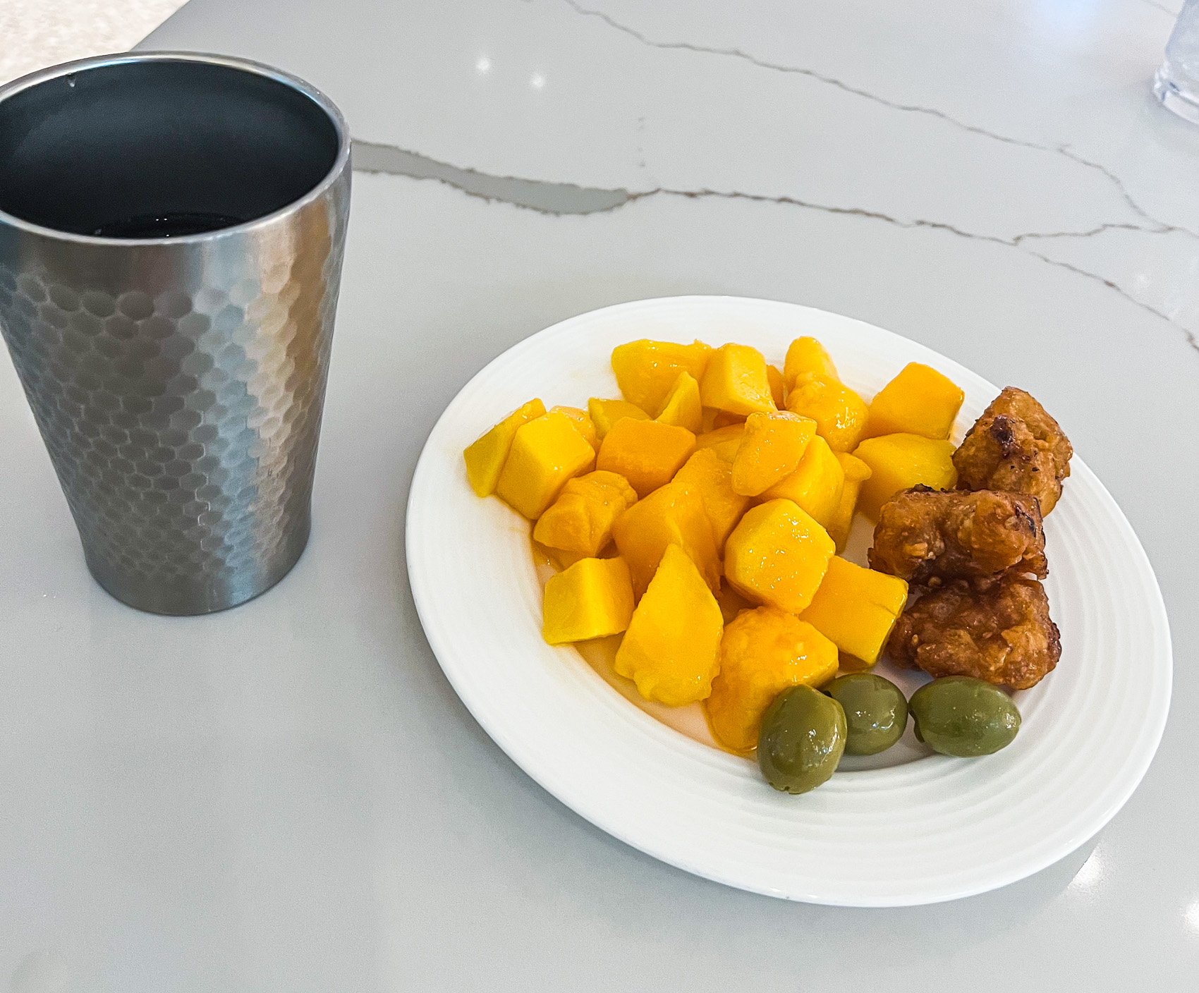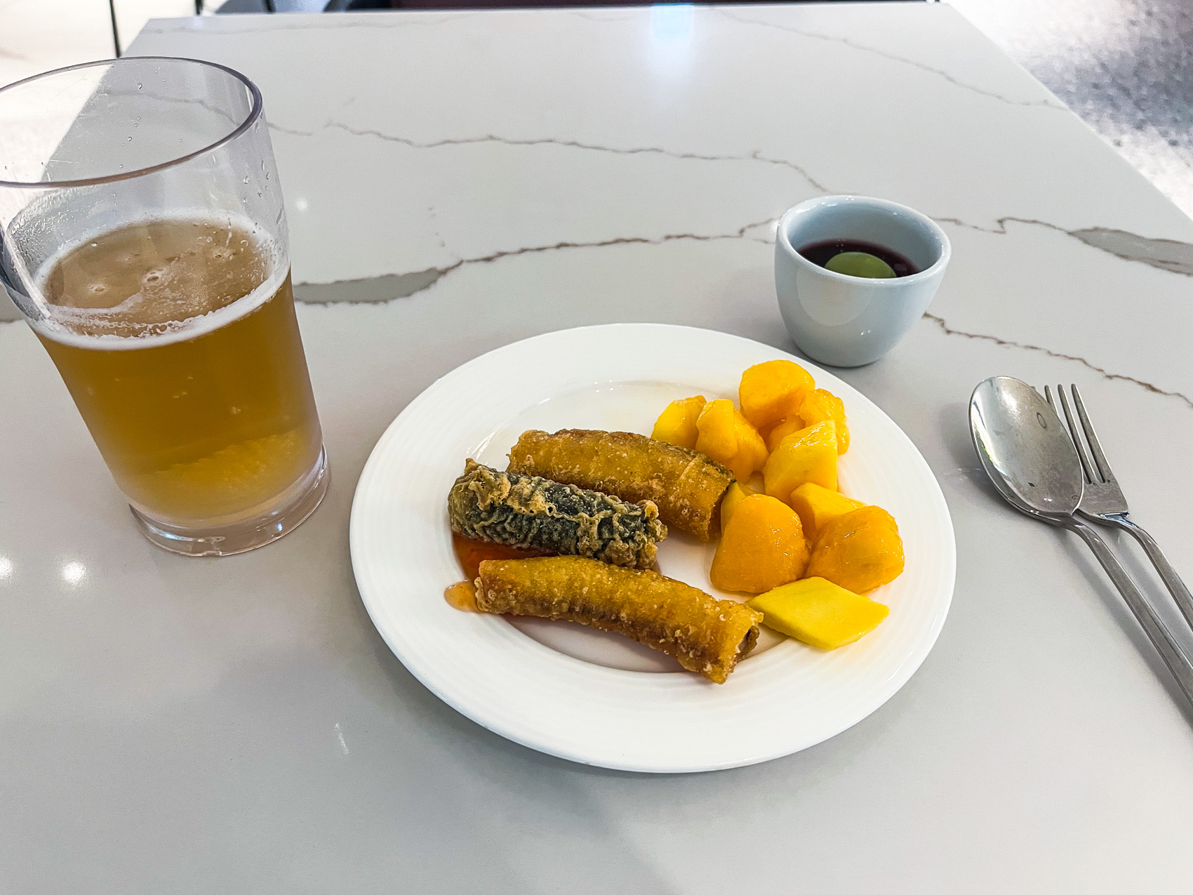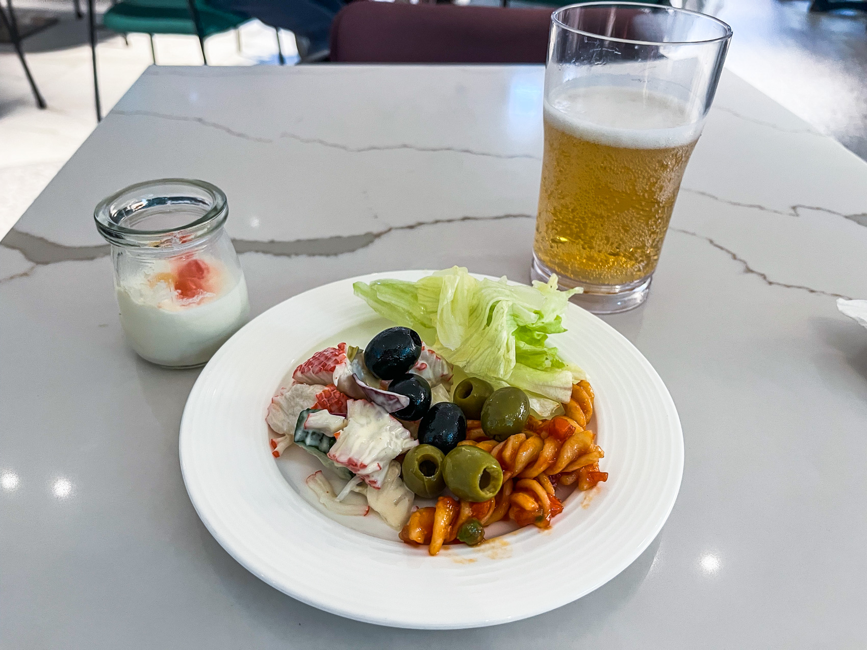 메인 식사는 볶음밥과 닭튀김에 파스타, 김말이,스프링롤 같은 양식과 중식 위주로 나오고 옆쪽에 비빔밥 재료와 김치, 밑반찬류의 한식코너도 있습니다. 워커힐에서 운영하는 라운지답게 메뉴는 적지만 나름 알차게 구성되어 있습니다.