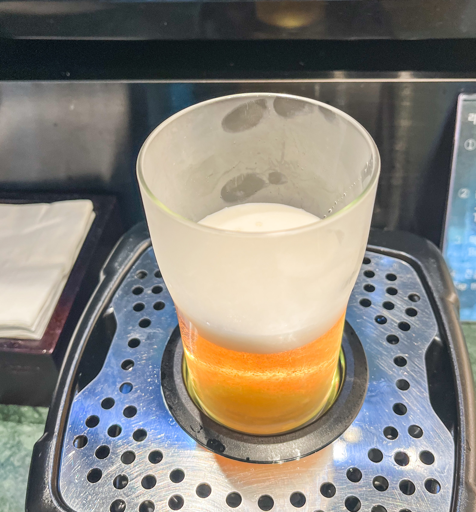 마티나라운지는 생맥주와 와인이 무제한입니다. 밑바닥에 노즐이 있는 컵을 누르면 생맥주가 밑에서부터 차 오르는 게 신기합니다.