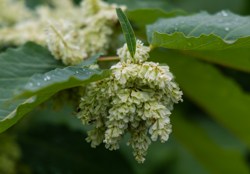 호장근의 꽃은 6~8월에 피고 백색이며 원추꽃차례로 달립니다.