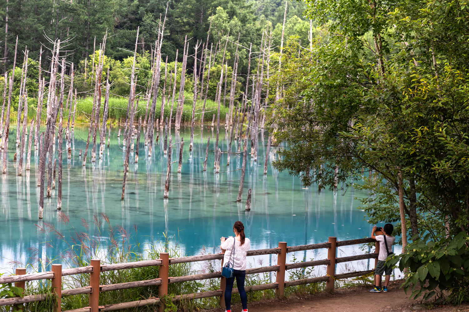 일본 홋카이도 청의호수, 그리고 오른쪽 아래 호장근의 모습