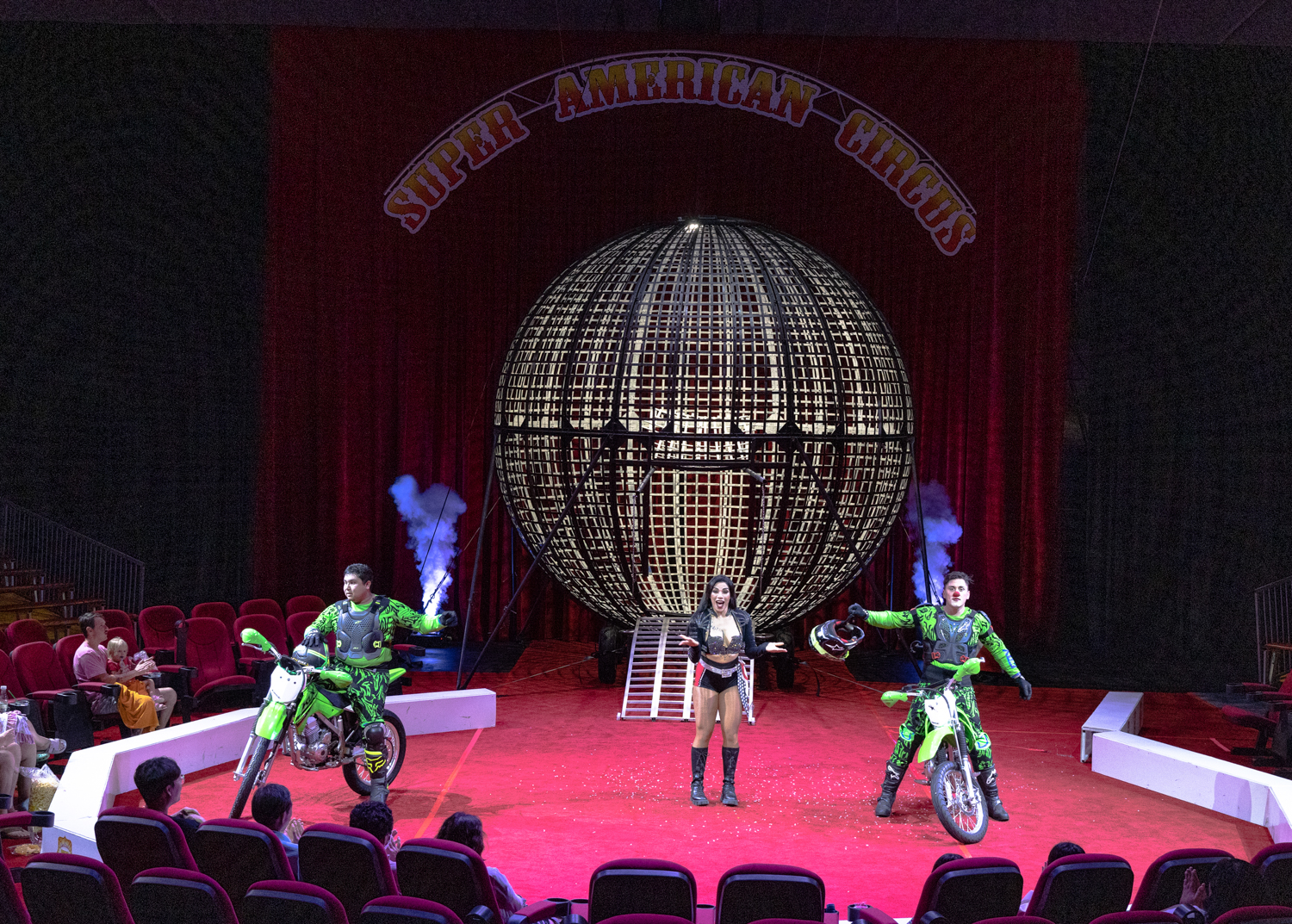 마지막으로 펼쳐진 오토바이 묘기는 보는 내내 아찔하기까지 하더군요. 공모양의 철망 안에 오토바이가 굉음을 내면서 360도 질주하는데 얼마나 위태해 보이던지 보는 내내 긴장감이 멈추지가 않습니다.