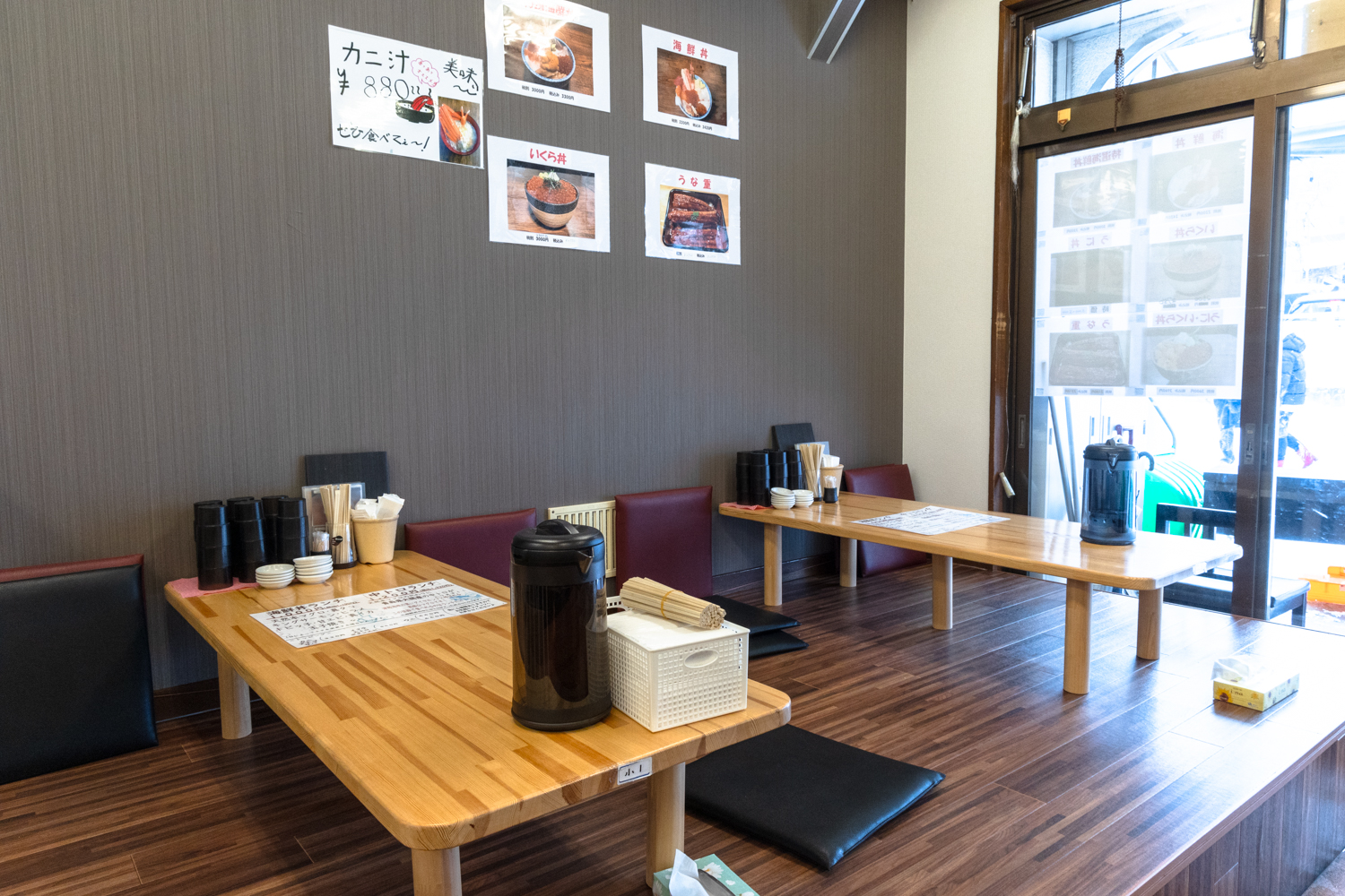 삼각시장에는 여러 곳의 카이센동 전문 식당이 모여 있습니다. 대부분 메뉴가 비슷해서 어디로 가야 할지 고민이라면 웨이팅 시간이 비교적 적고 번잡하지 않으며 특히 다른 가게들에 비해 가격이 저렴하면서도 퀄리티가 훌륭한 '시장식당'을 추천합니다. 식당 옆에 충전까지 되는 실내 대기 공간이 따로 있어 추위에 떨지 않고 편안하게 기다릴 수 있습니다. 그리고 오타루 삼각시장 '시장식당'은 점심시간만 영업하기 때문에 문 닫기 전에 일찍 가야 합니다.