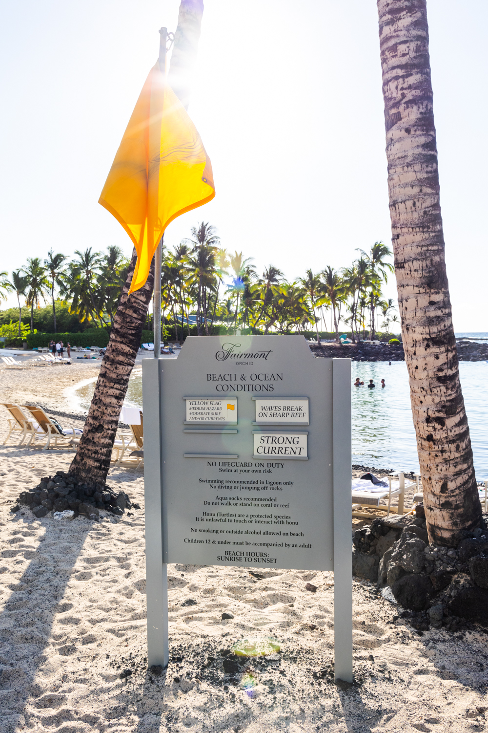 전용 비치의 컨디션을 안내해 주는 알림판입니다. 바다거북도 가끔 올라오는데 절대 만지면 안 된다고 합니다. 바닷물이 얼마나 깨끗한지 물속 고기가 그대로 보일 정도입니다.