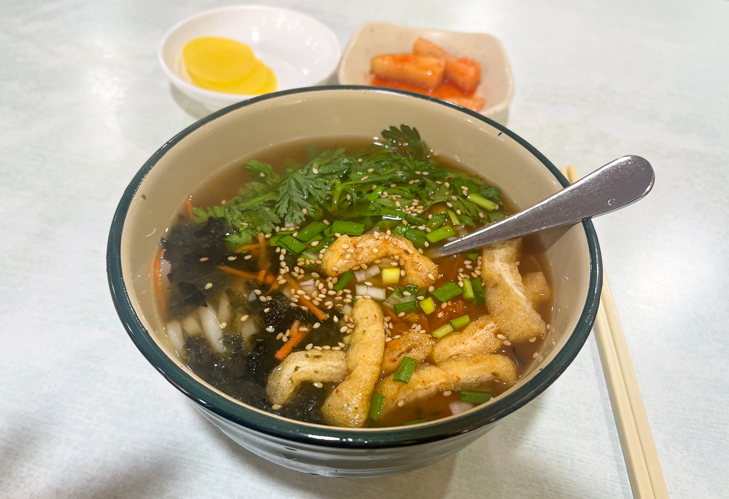 이연복 셰프가 극찬했다고 하는 냄비우동이 아닌 냄비국수입니다. 전에는 부추가 고명로 올라왔었는데, 오늘은 향긋한 쑥갓이 얹혀 있습니다.