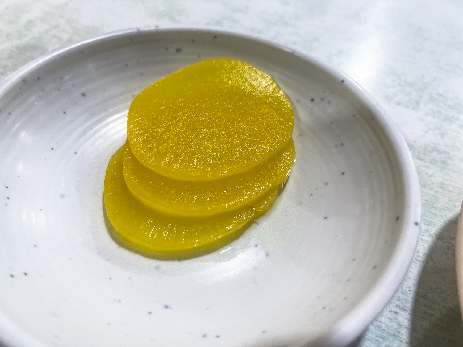 명화원 음식들이 전체적으로 좀 달달한 게 특징인데, 냄비국수는 조금 더 달달하달까요? 꼬들꼬들 부들부들한 중면 굵기의 중화면에 달걀찜과 유부가 큼지막하게 들어가 있고, 교자도 두어 개 보입니다. 먹다 보면 파, 마늘 양념간장이 간절해지는 맛이기도 합니다.